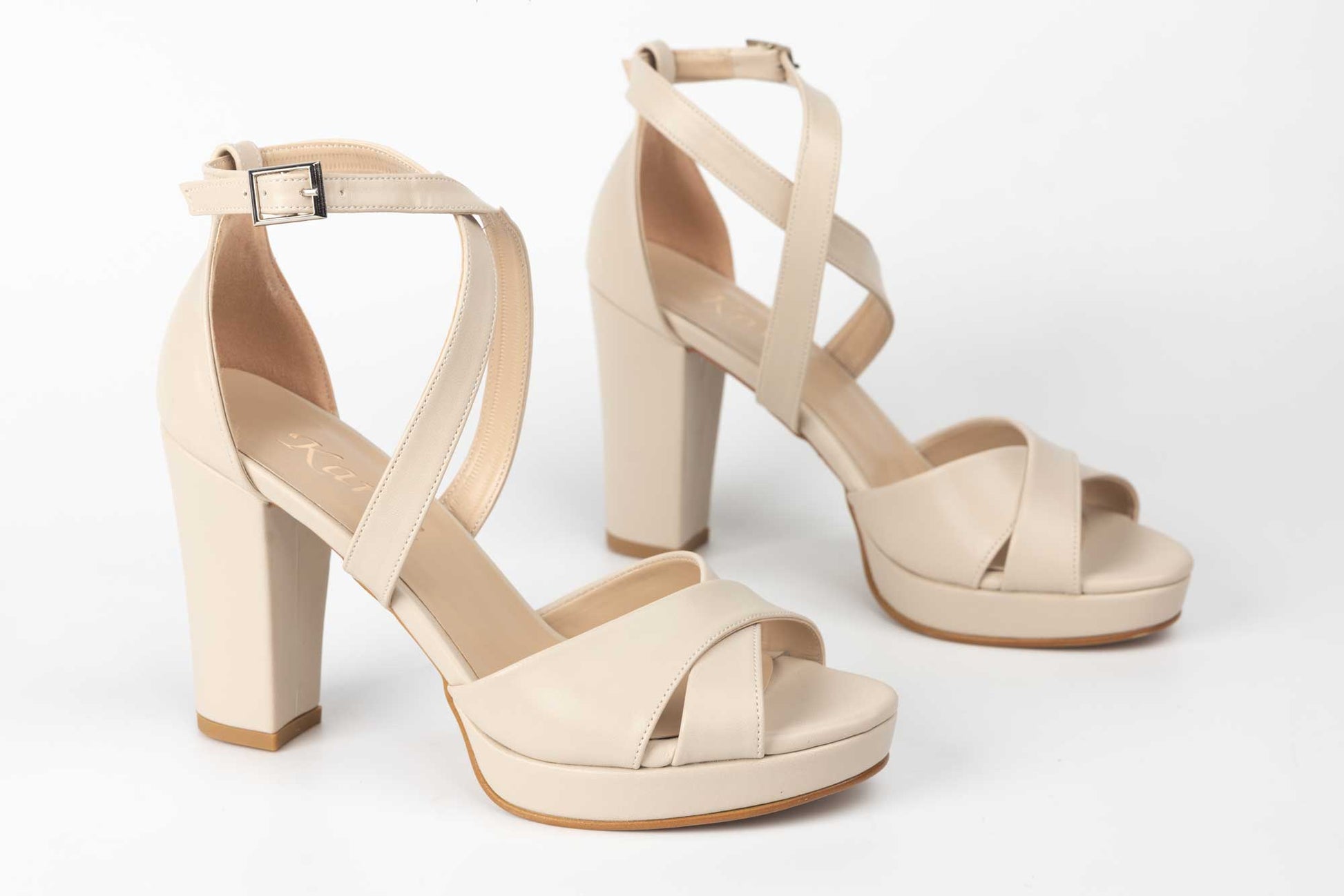 KARIN women's sandals made of quality eco-leather with a thick heel of 11 cm. The weight of a single foot is 264 grams. The fastening is made with 2 thin X-shaped straps above the ankle for better fixation of the foot. The front part is made of 2 overlapping straps which makes this sandal very elegant and comfortable.