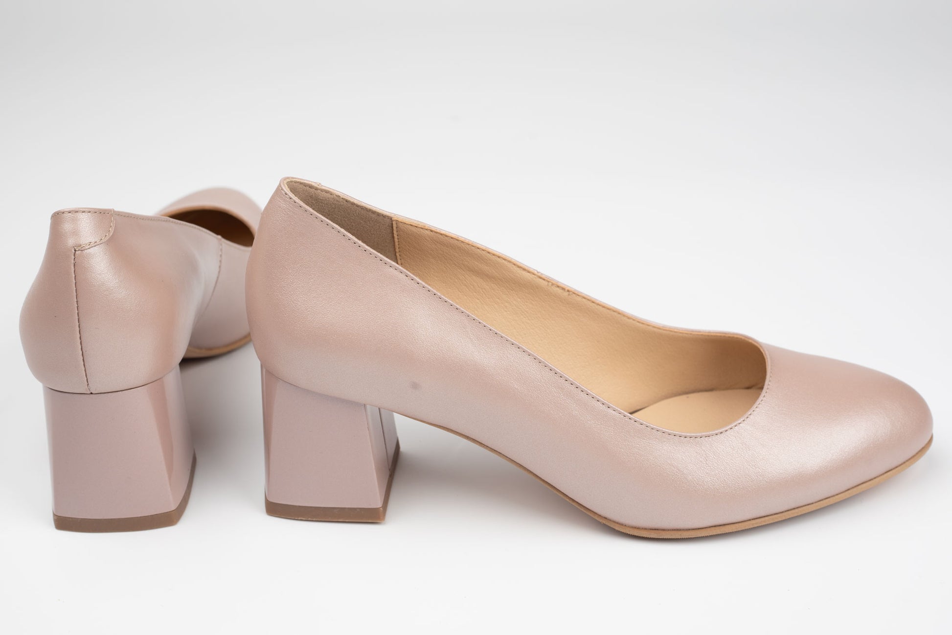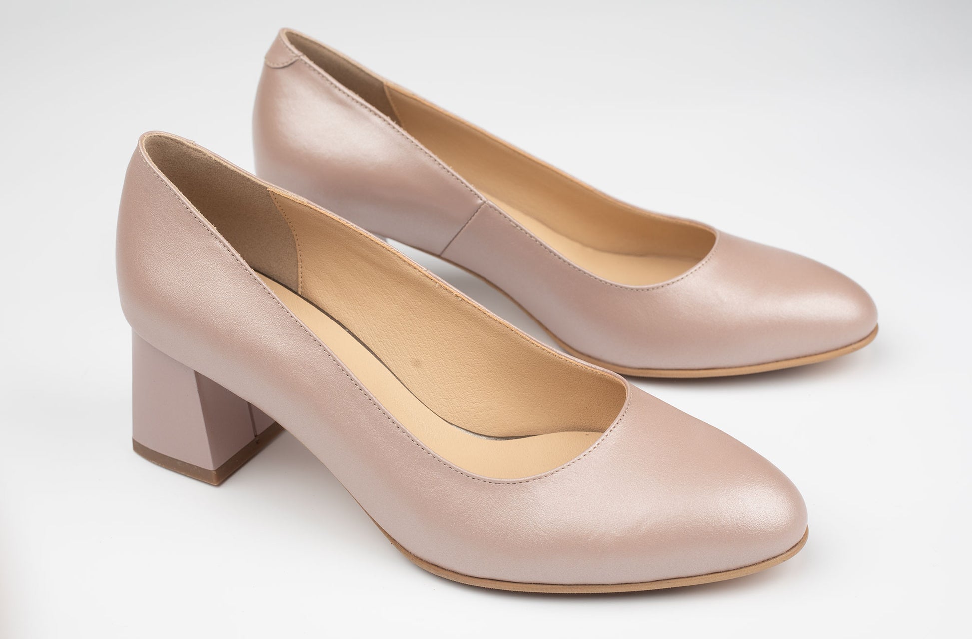 Pantofi ANTONIO de dama din piele naturala cu toc rotunjit de 5,5cm inaltime. Pielea este foarte moale si ofera maximum de confort la purtare indelungata, talpa este usoara, iar pe interior deține un branț din piele, având un calapod lat XL special pentru picioare late sau cu mont. Greutatea unui singur picior este de 250 grame.