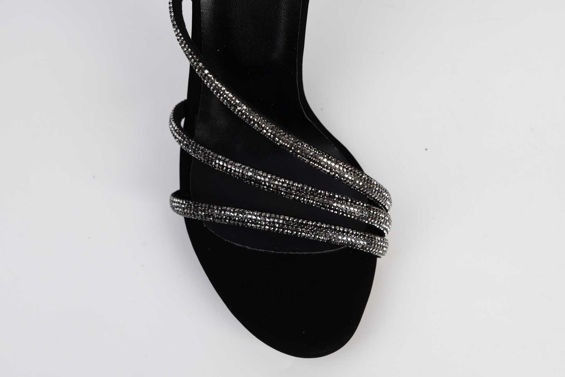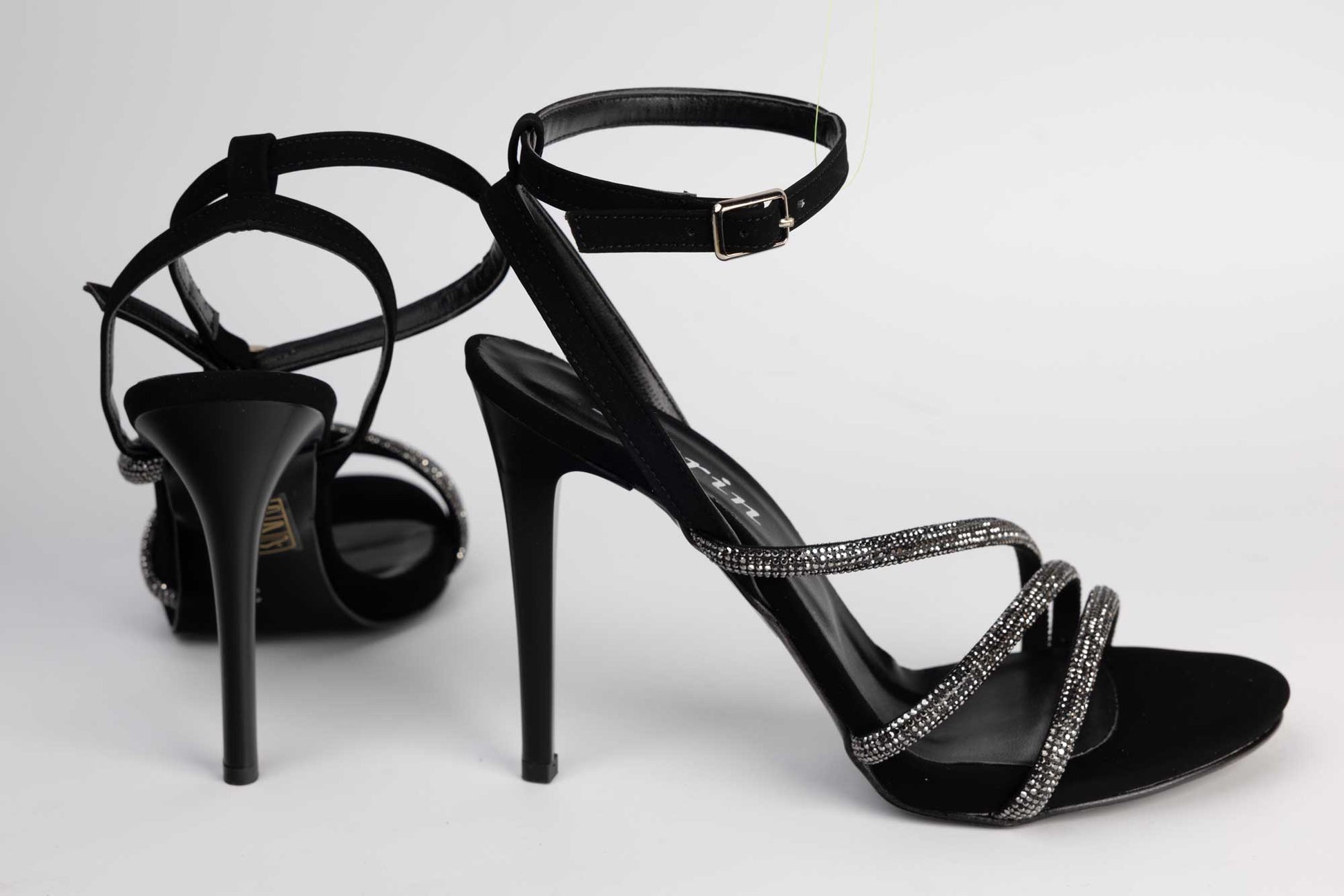 KARIN women's sandals made of quality eco-leather with a 10 cm high stiletto heel. The weight of a single foot is 218 grams. The fastening is done with a strap above the ankle for better fixation of the foot. The front part is made of 3 straps with crystals which makes this sandal very elegant and comfortable.