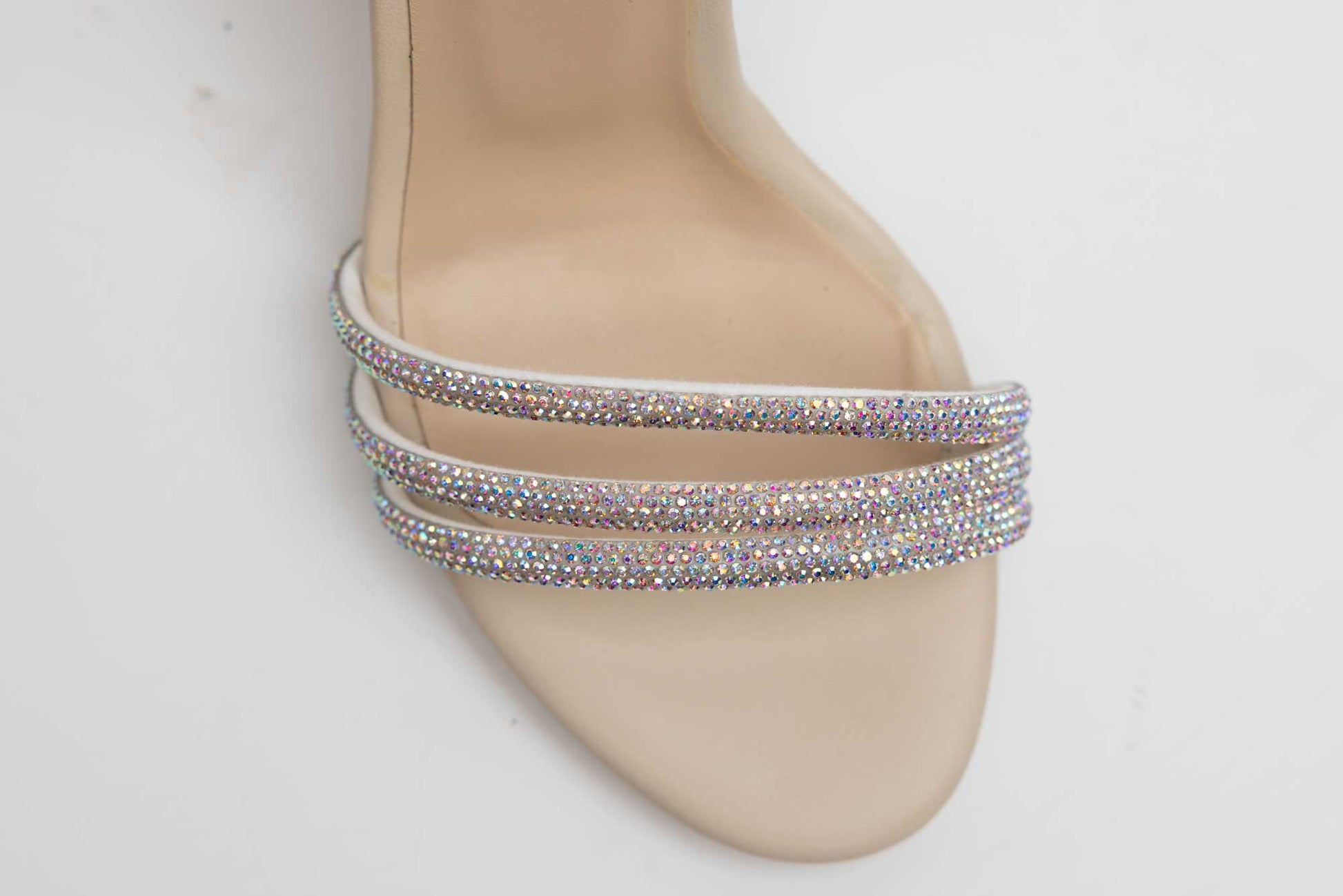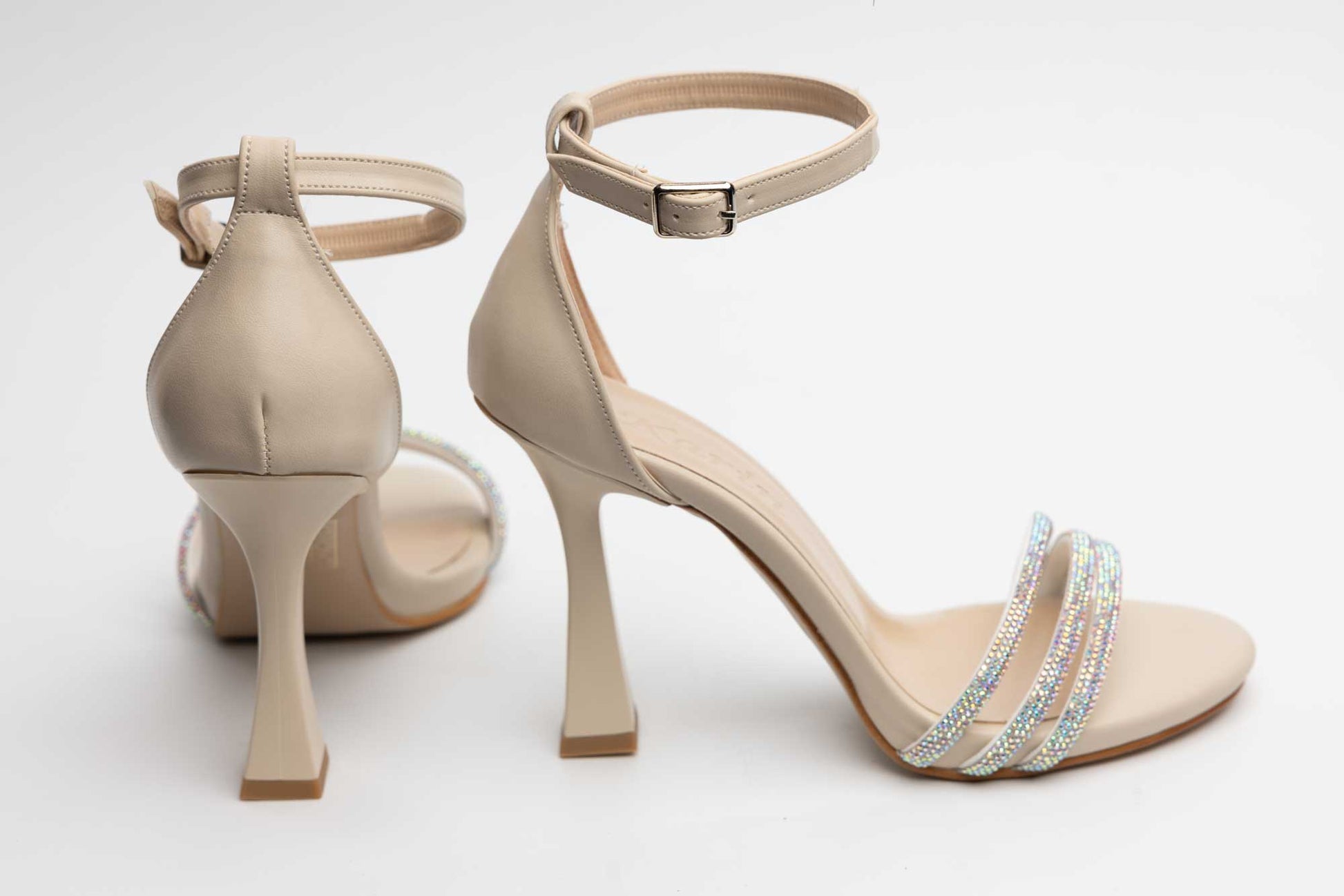 KARIN women's sandals made of quality eco-leather with a 10 cm high flared heel. The weight of a single foot is 218 grams. The fastening is done with a strap above the ankle for better fixation of the foot. The front part is made of 3 straps with crystals which makes this sandal very elegant and comfortable. Sizes from 33 to 41.
