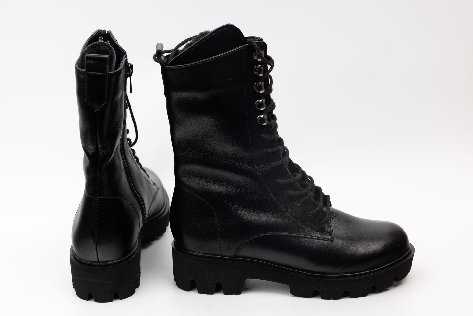 PERLA women's boots made of moisture-resistant natural suede with laces and side zipper, thick non-slip serrated heel sole with round toe, comfortable and lightweight. 6 mm thick fur on the inside and on the insole. The weight of a single leg is 370 grams.