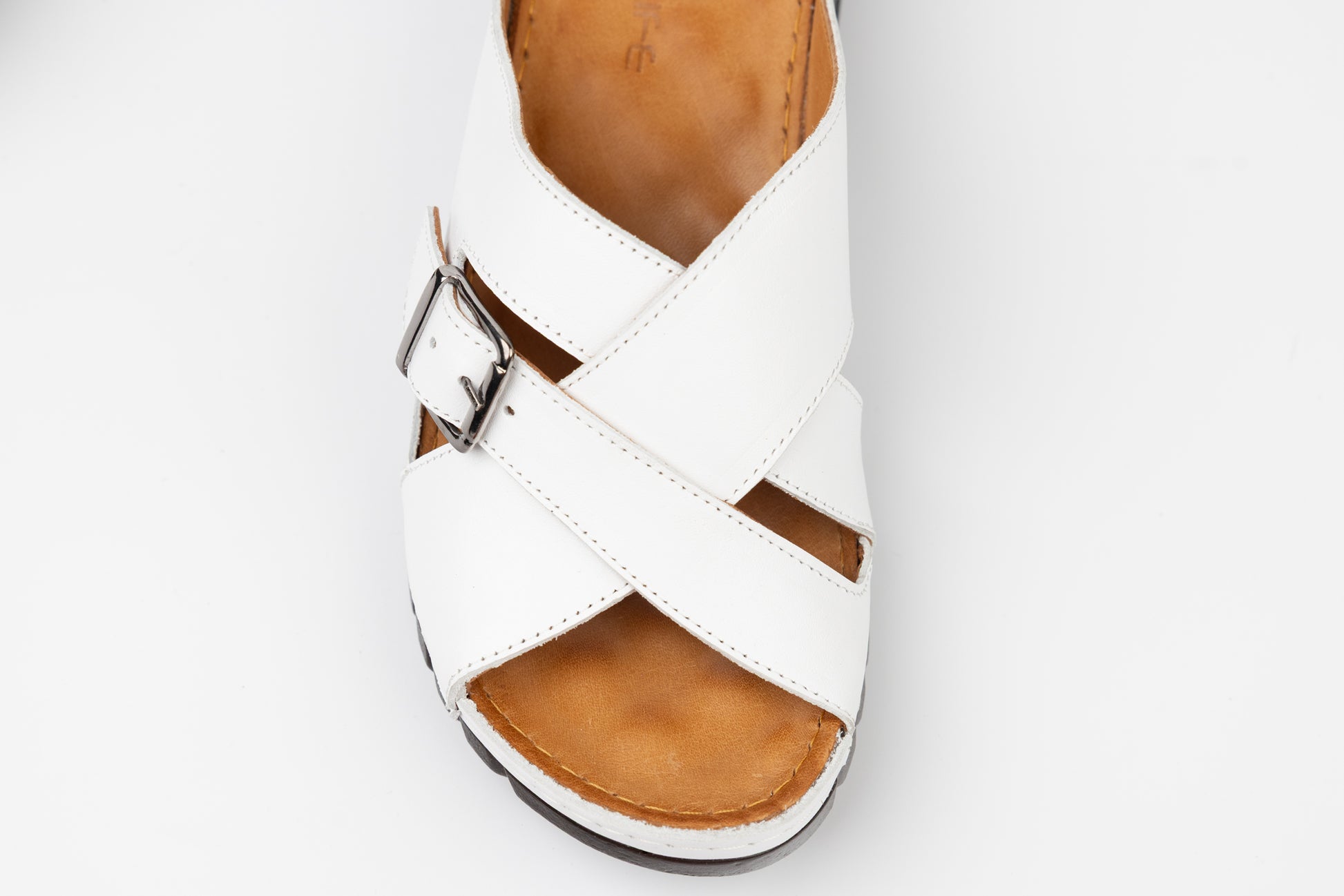 LSD women's clogs made of natural leather with a 4 cm thick orthopedic sole, lined on the inside with natural leather and fastened with a strap with a buckle on the side of the foot. The smooth inclination of the foot in these clogs makes them much more comfortable to wear for a long time, being recommended even for feet with bunions because they cover them completely. The weight of a single foot is 250 grams.