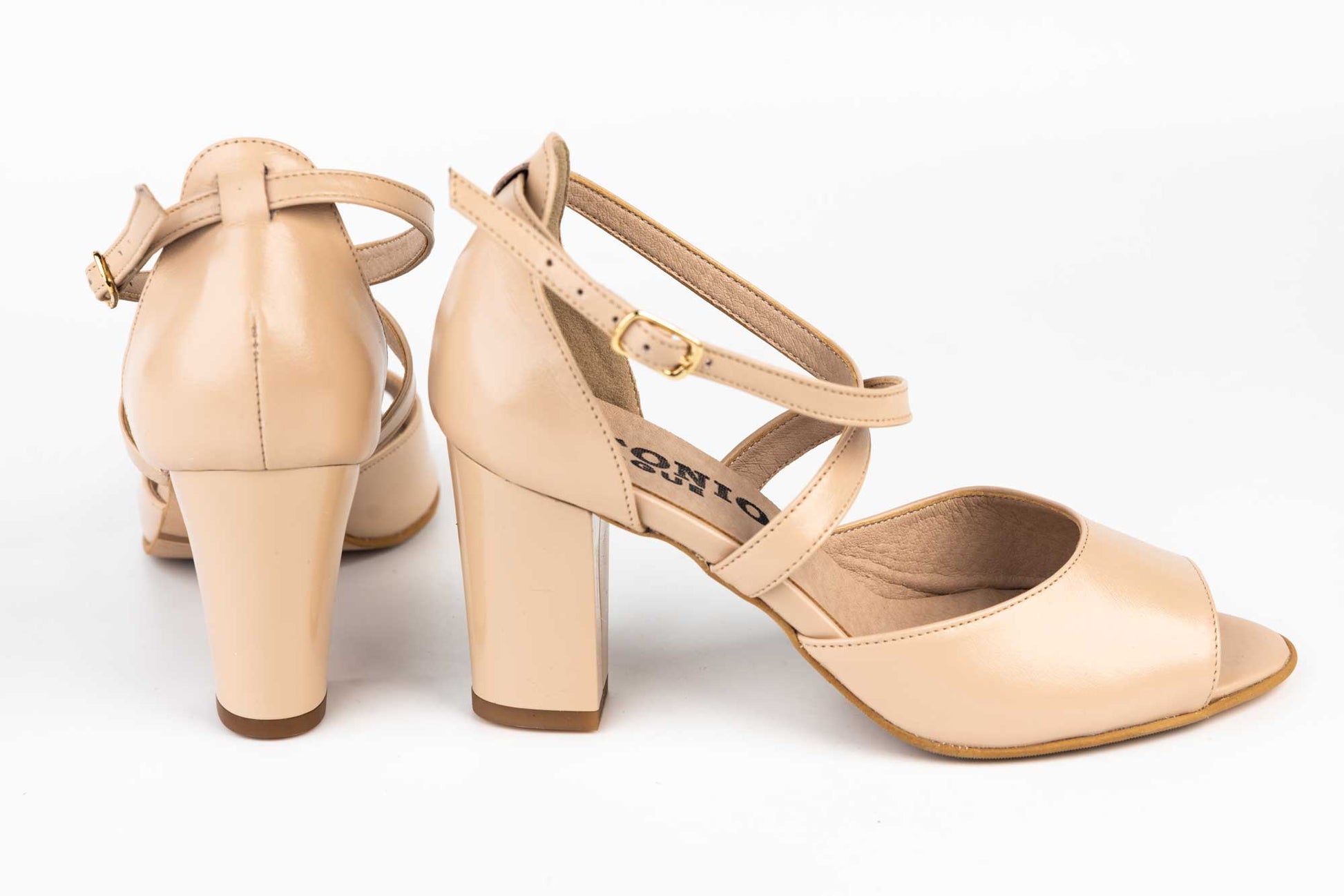 ANTONIO women's sandals made of genuine leather with a very stable 6.5 cm thick heel with a suitable instep and inclination for long-term wear without problems. The fastening is made in 2 X-shaped straps with a delicate buckle.