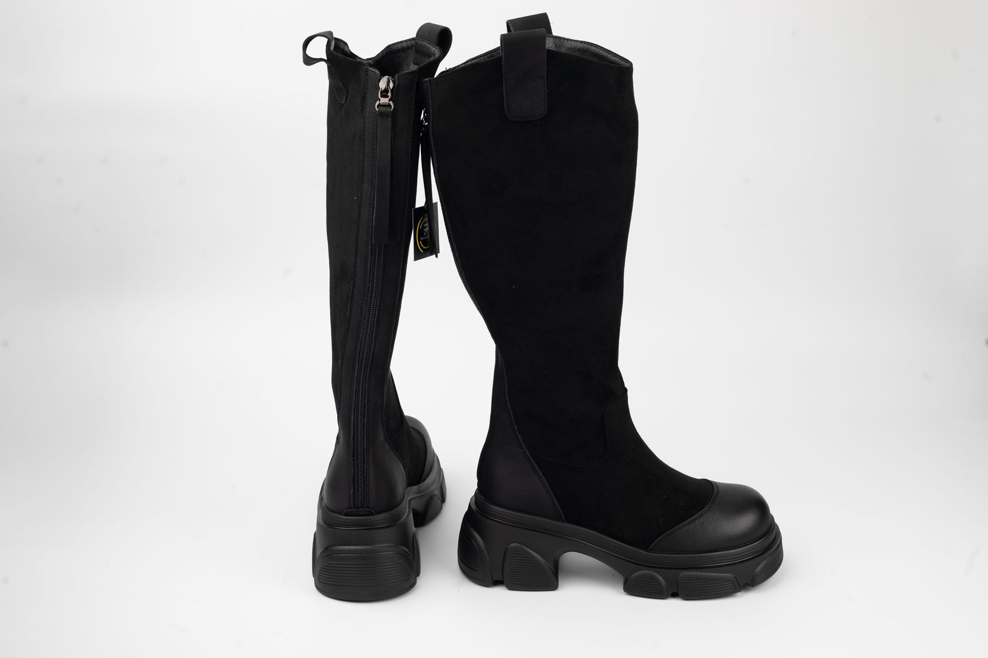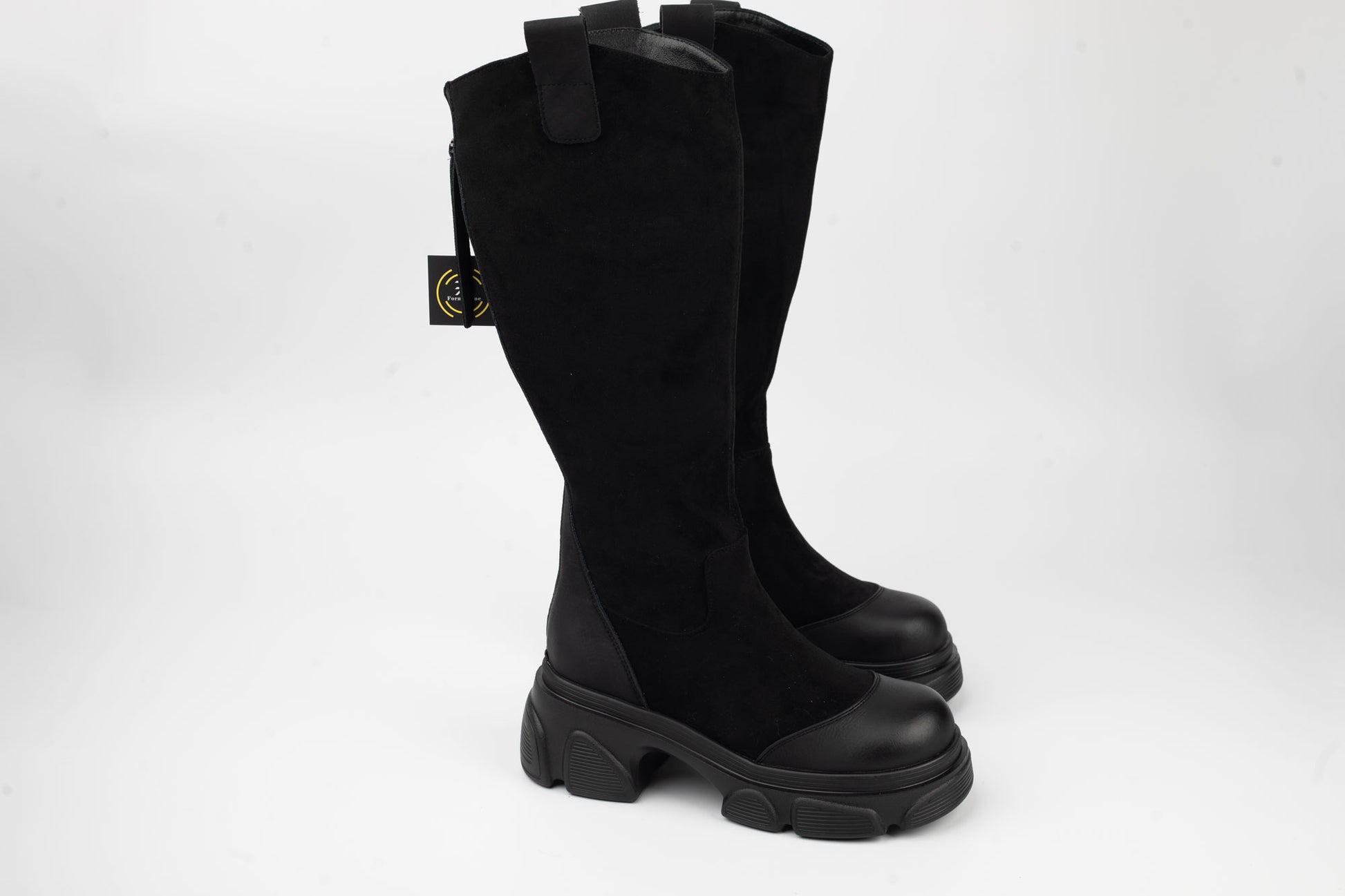 FORMAZIONE women's boots made of moisture-resistant natural suede leather with side zipper and thick, non-slip serrated heel sole with round toe, comfortable and lightweight. The weight of a single leg is 340 grams.