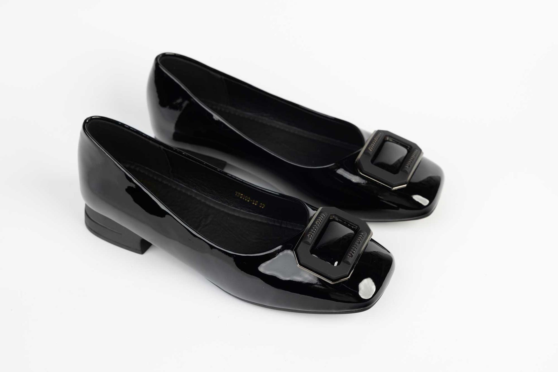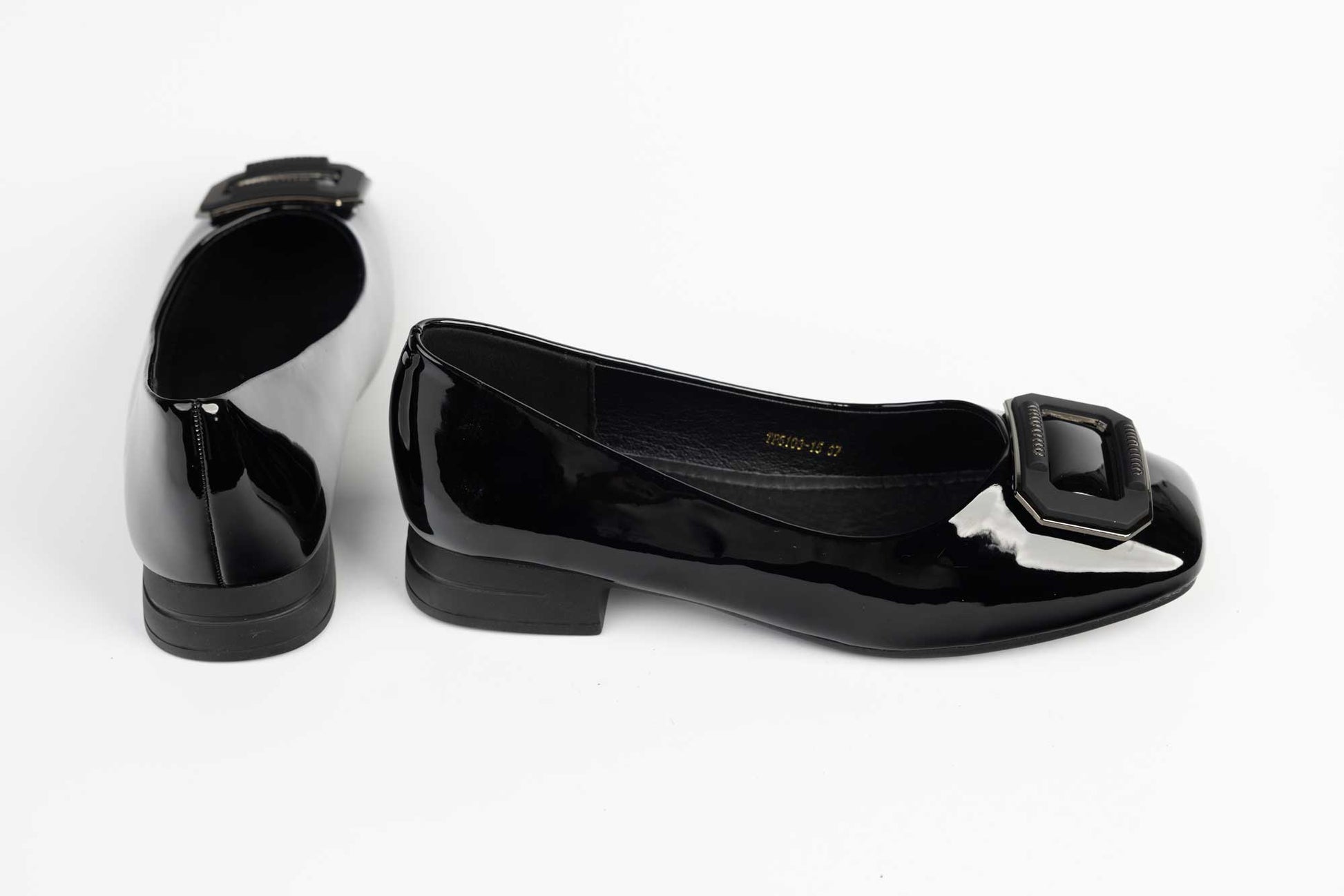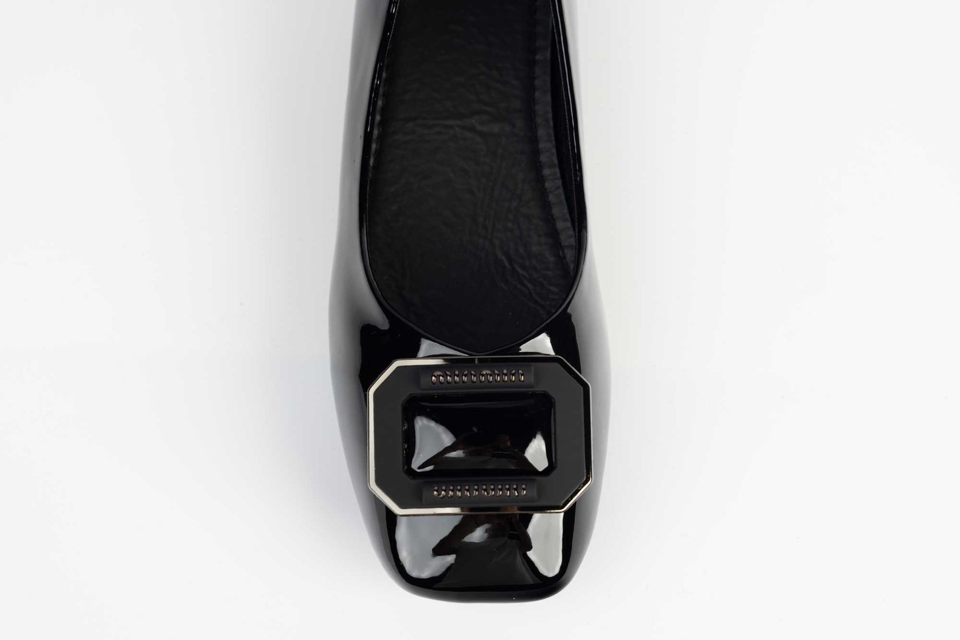 FORMAZIONE women's shoes made of natural leather with a simple 2.5 cm square heel. The leather is very soft and offers maximum comfort for long wear. The sole is light, flexible and has a memory insole on the inside. An accessory with a black insert is mounted on the top of the shoe.