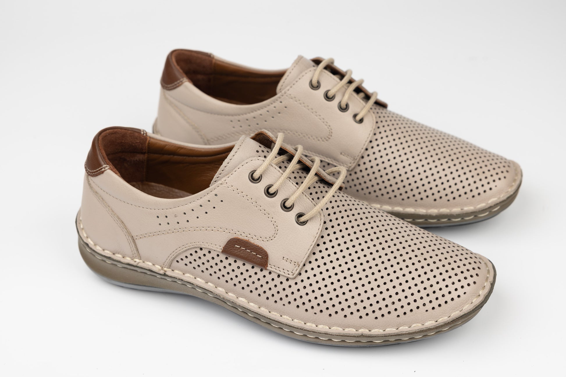 Men's genuine leather shoes GORETTI 6-106 Beige perforated