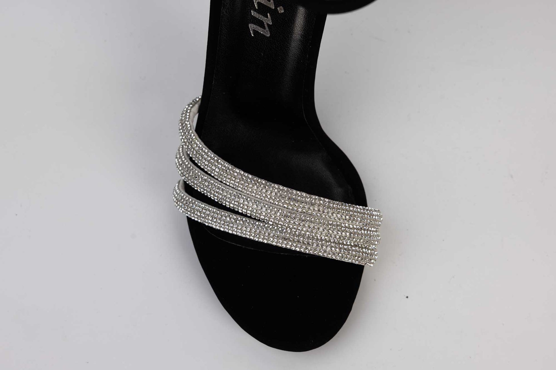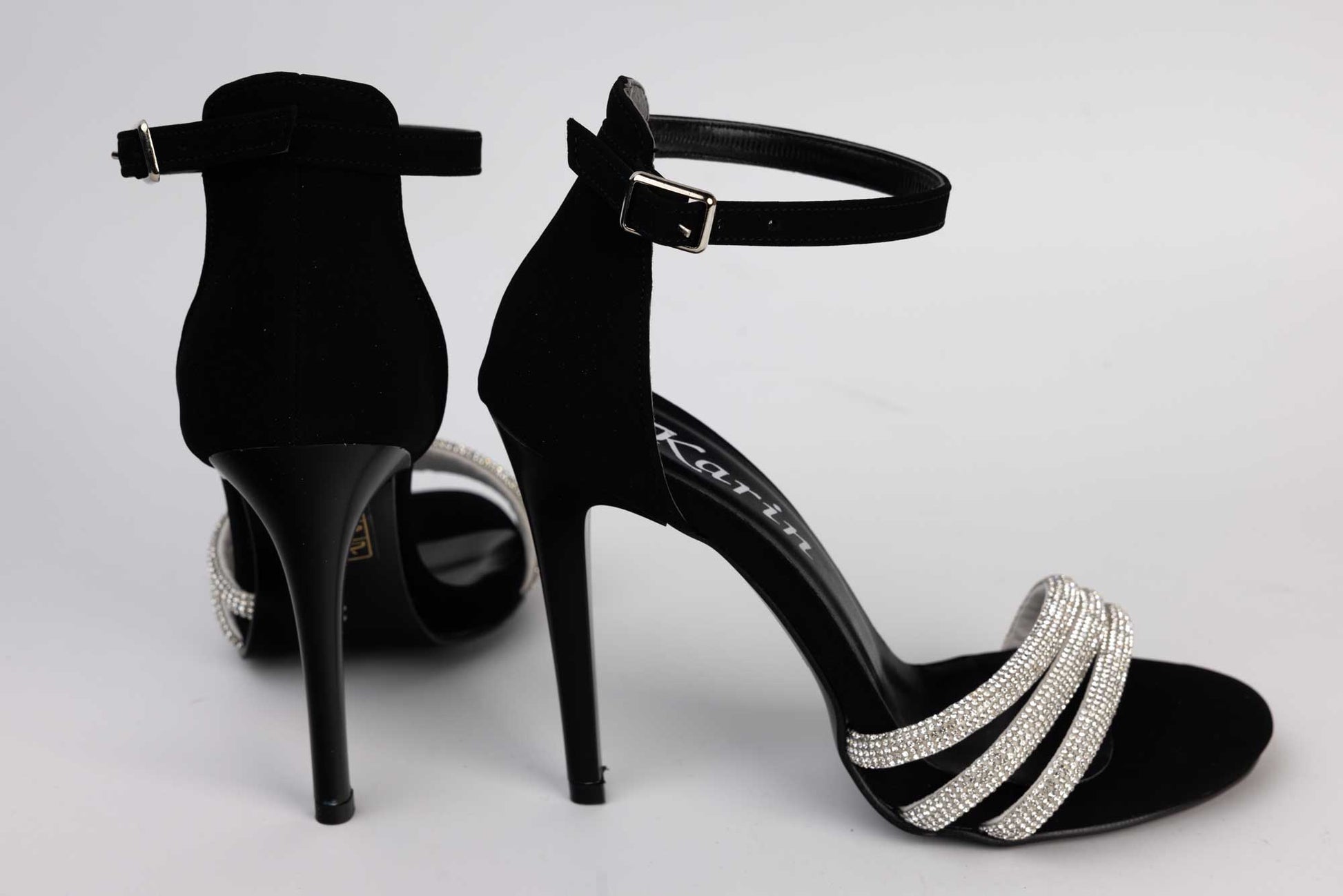 KARIN women's sandals made of quality eco-leather with a 10 cm high stiletto heel. The weight of a single foot is 218 grams. The fastening is done with a strap above the ankle for better fixation of the foot. The front part is made of 3 straps with crystals which makes this sandal very elegant and comfortable.