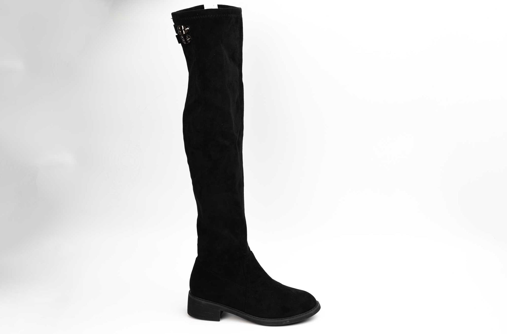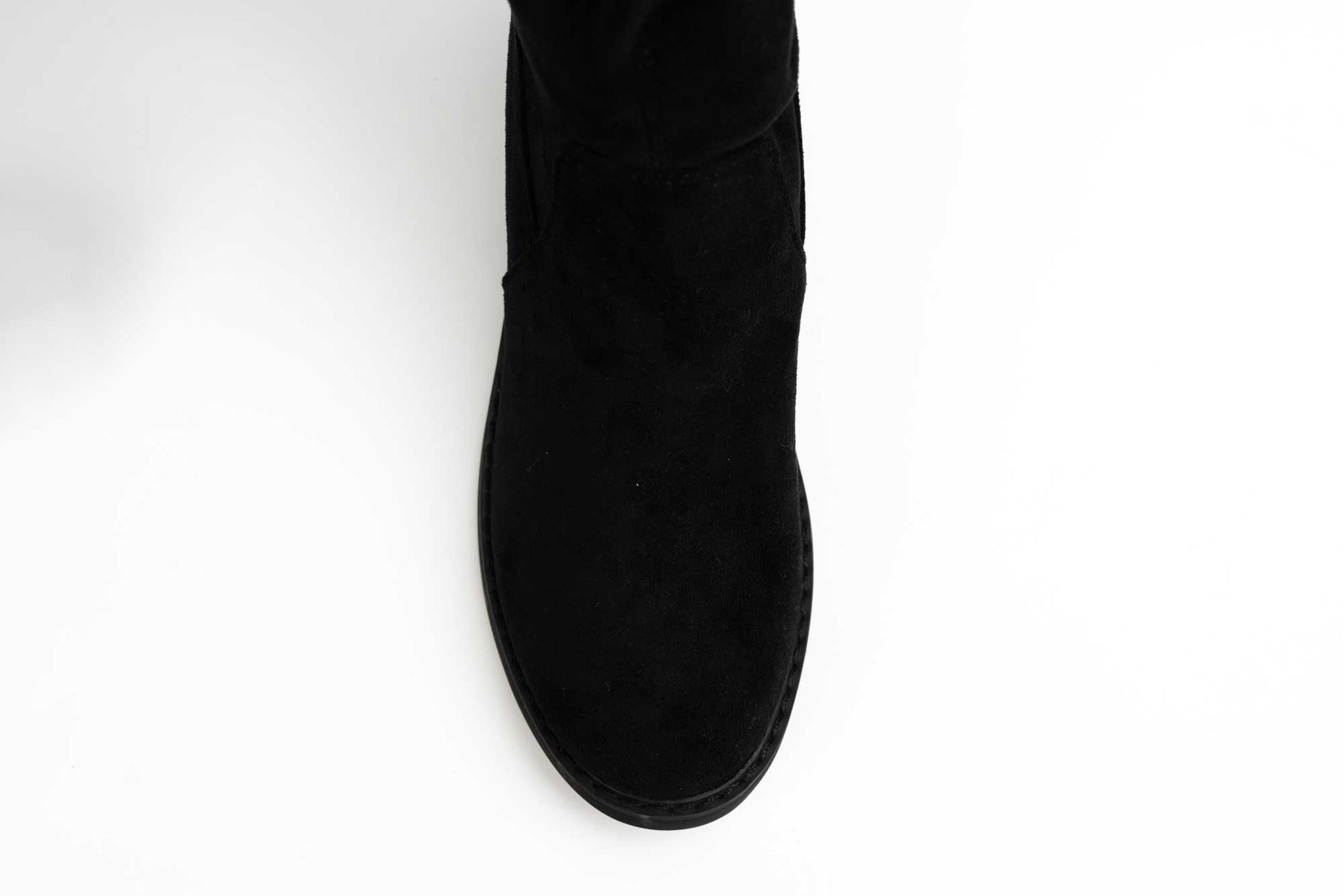 FORMAZIONE women's boots made of stretch elastic velour with a 3 cm square heel and no side zipper allowing them to reach above the knee. Measured weight 359 grams for a single boot.
