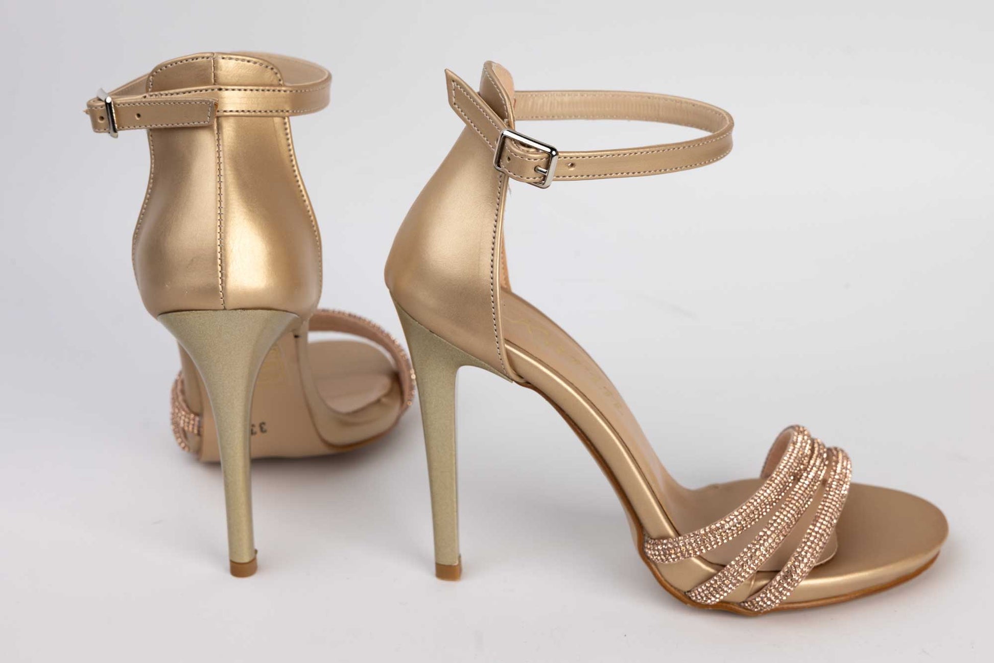 KARIN women's sandals made of quality eco-leather with a 10 cm high stiletto heel. The weight of a single foot is 218 grams. The fastening is done with a strap above the ankle for better fixation of the foot. The front part is made of 3 straps with crystals which makes this sandal very elegant and comfortable.