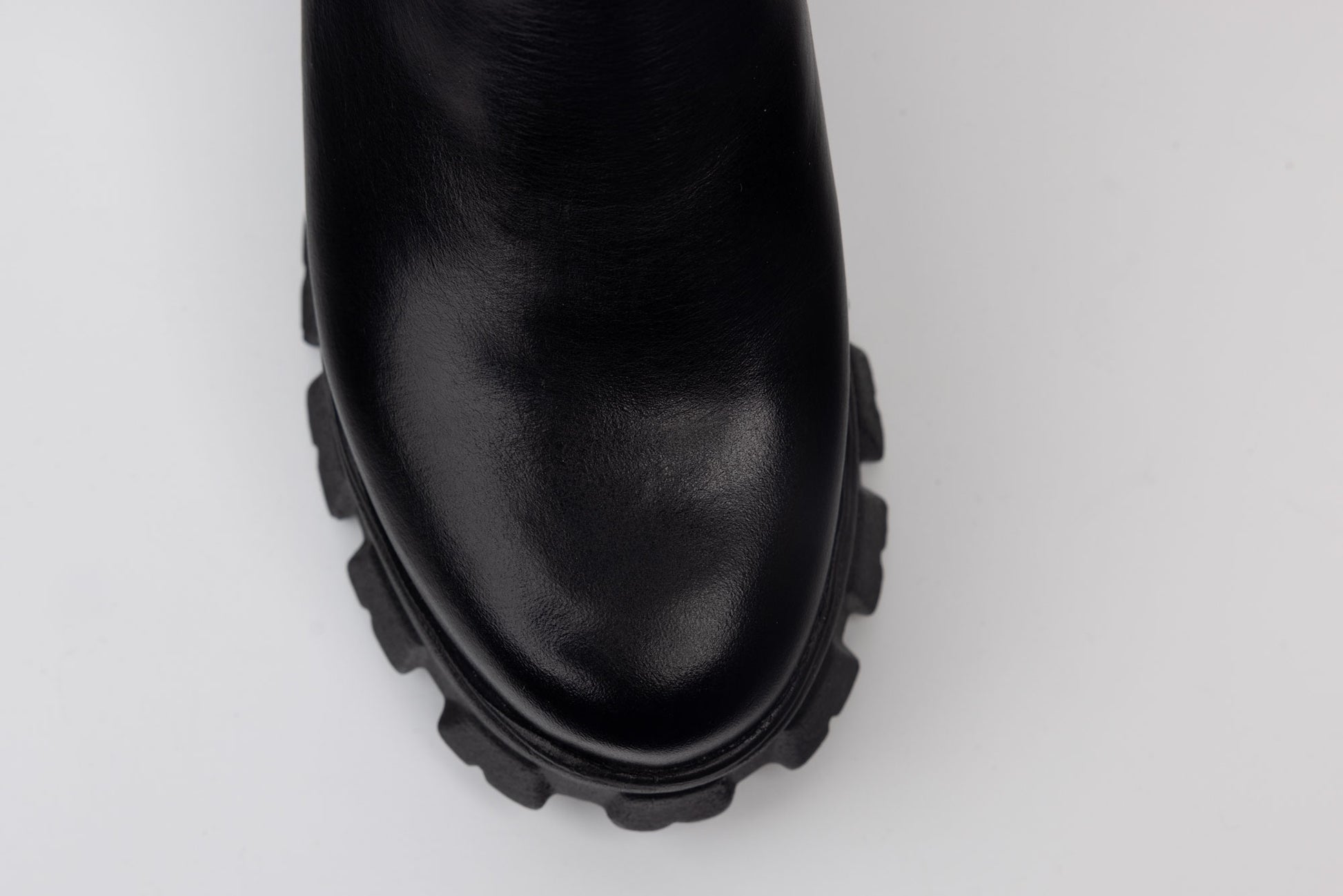 PERLA women's boots made of moisture-resistant natural leather with laces and side zipper, thick, serrated, non-slip heel sole with a round toe, comfortable and lightweight. The weight of a single leg is 370 grams.