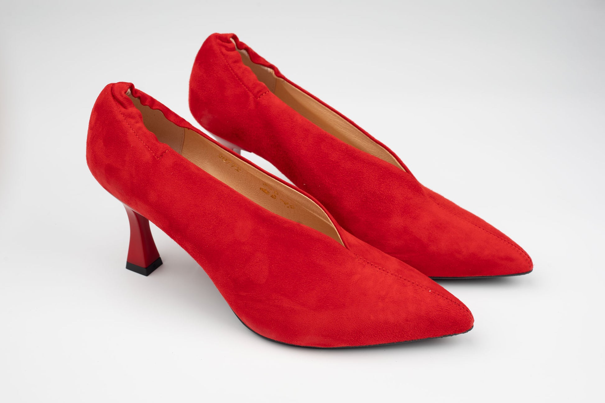 Pantofi damă piele naturală întoarsă 20772 Roșu vel