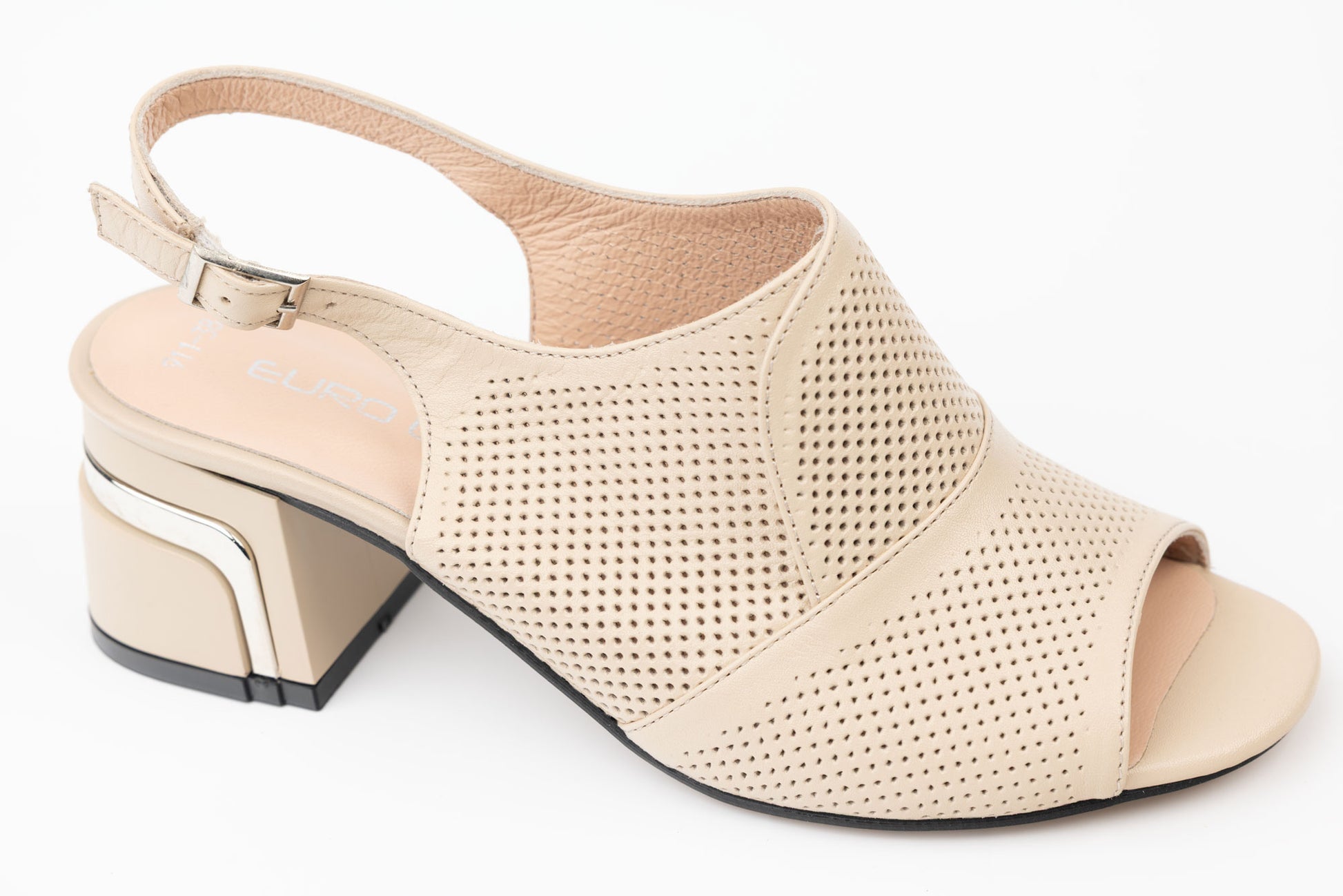 -4 cm medium heel with gold insert.