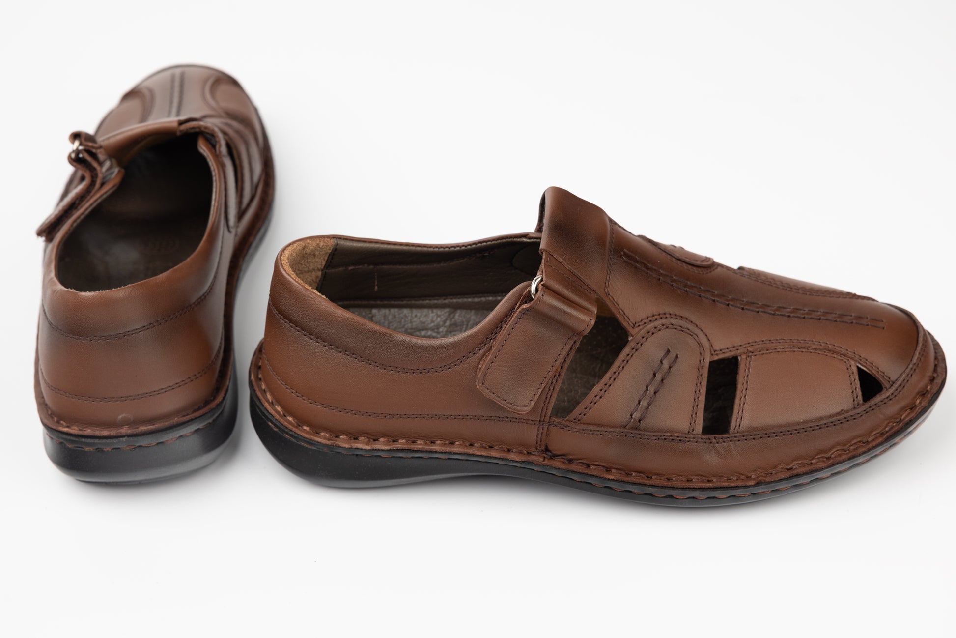 GORETTI men's summer sandals made of genuine leather with cutouts for foot breathing, soft to the touch with a Velcro fastening and a very elastic sole. Genuine leather inside and a memory insole for maximum comfort. The weight of a single shoe is 290 grams.