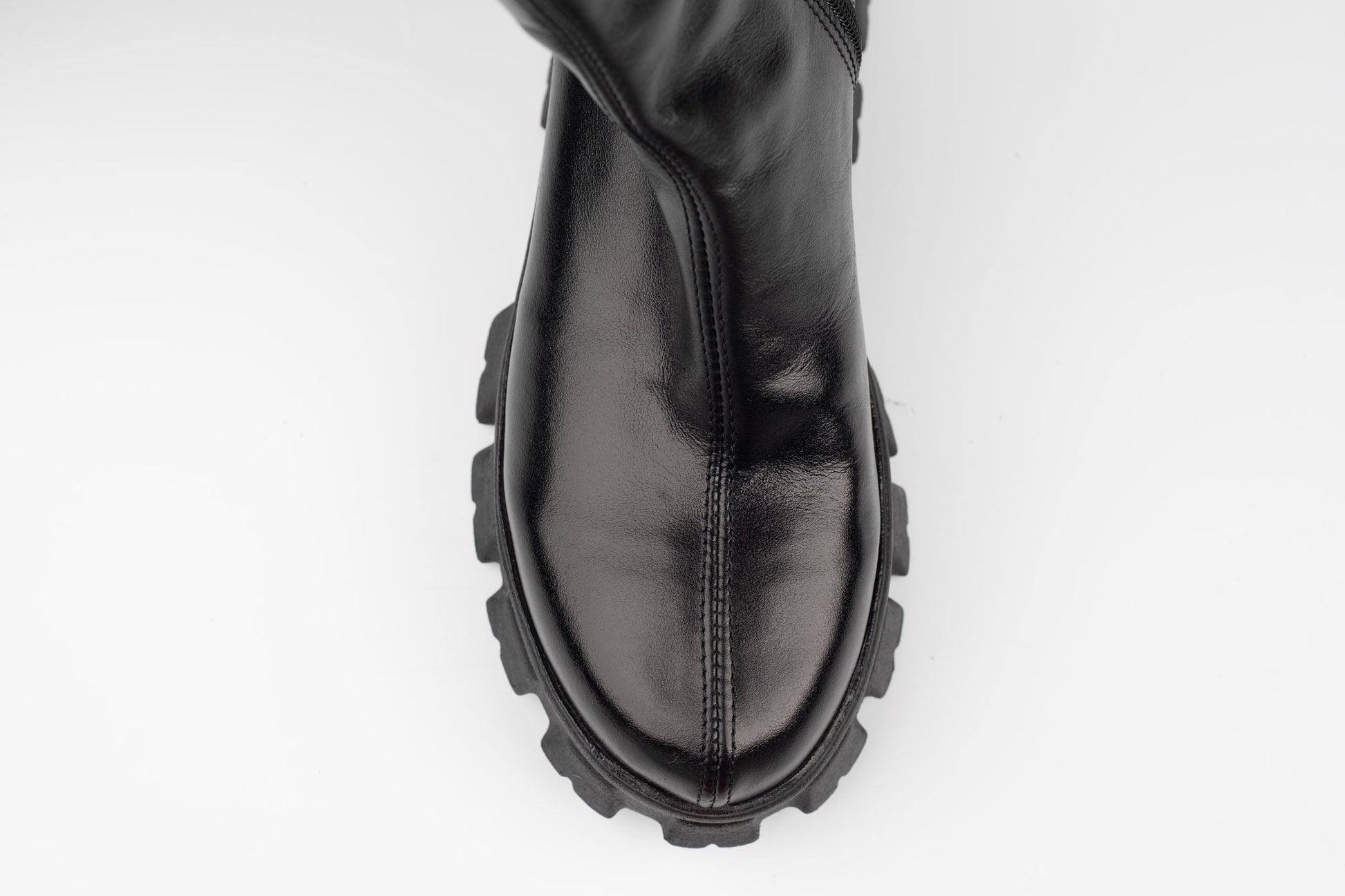 Ghete PERLA de dama din piele intoarsa naturala rezistenta la umezeala cu siret si fermoar lateral, talpa cu toc groasa zimtata antiderapanta cu varful rotund,comode si usoare. Greutatea unui singur picior este de 370 grame.