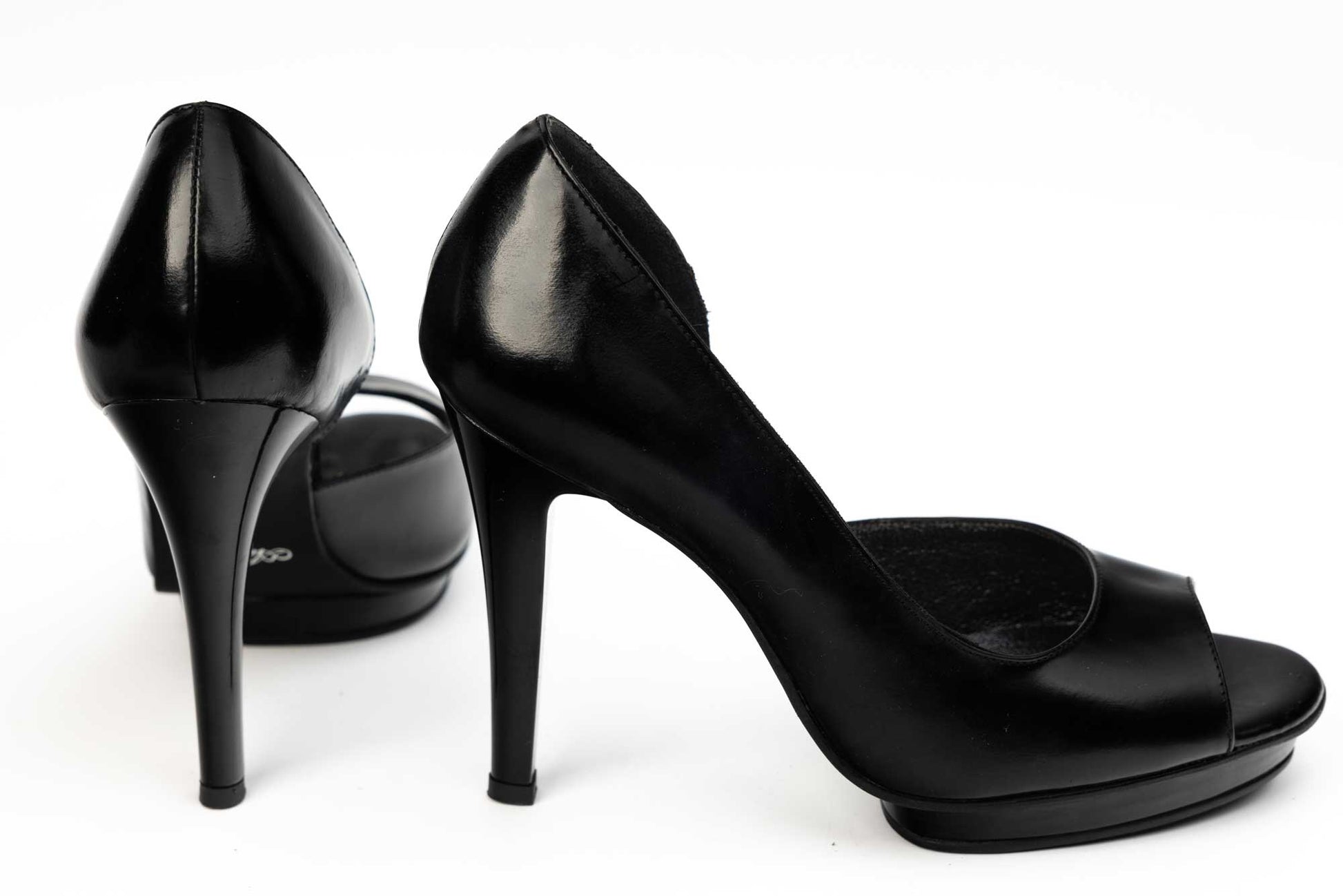AUTHENTIC women's sandals made of natural patent leather with a thin heel 10 cm high. The weight of a single foot is 264 grams. The sole has a 1 cm thick platform for a foot inclination suitable for the height of the heel.