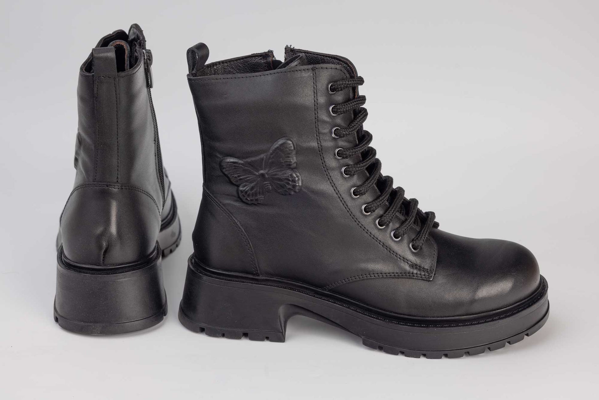 STEPPA women's boots made of natural leather, lined with fur, with a low sole of 5 cm thick and fastened with laces. Putting them on is easy thanks to the side zipper that allows the foot to slide inside the boot, and the weight of a single boot is 520 grams. Made in Romania.