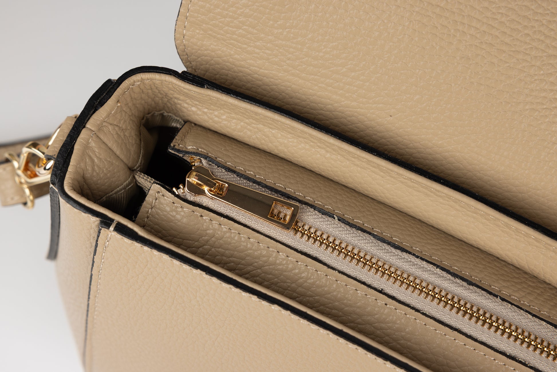 Geanta PASOTI din piele naturală de calitate superioară de dimensiune medie oferă spațiu interior suficient pentru telefon , obiecte folositoare si cosmetice.