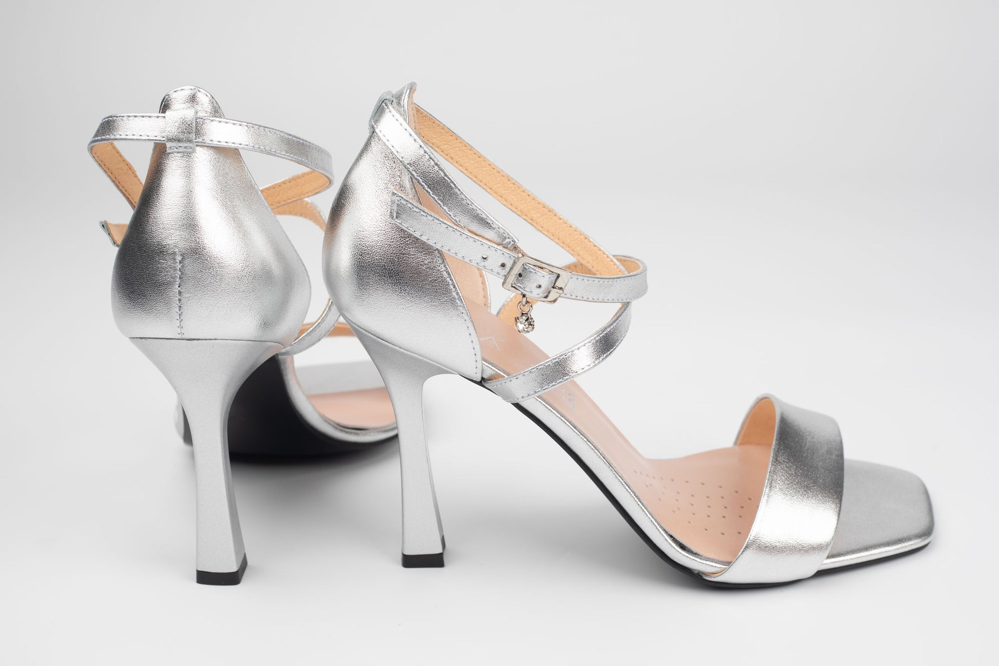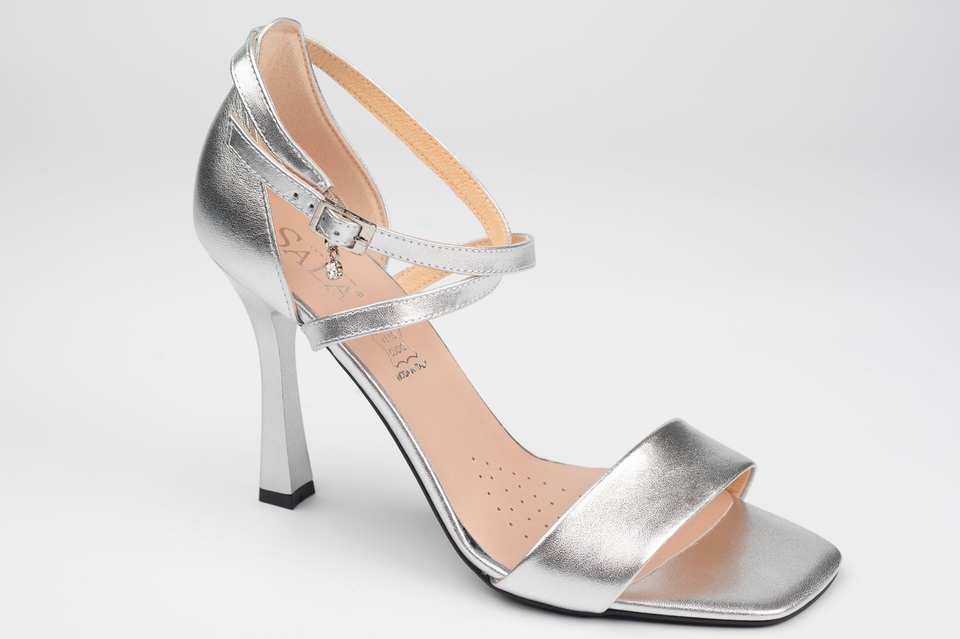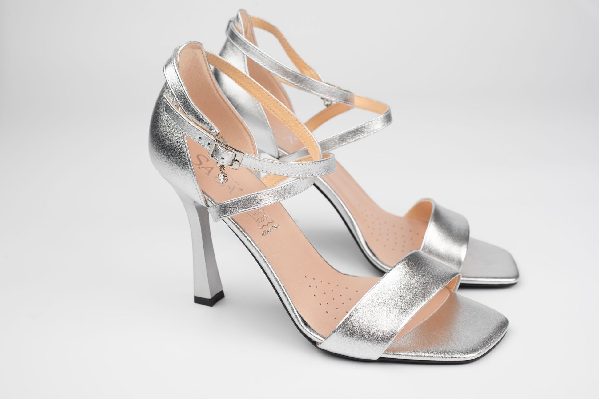 Sandale damă piele naturală SALA 20636 Argintiu (toc 9 cm)