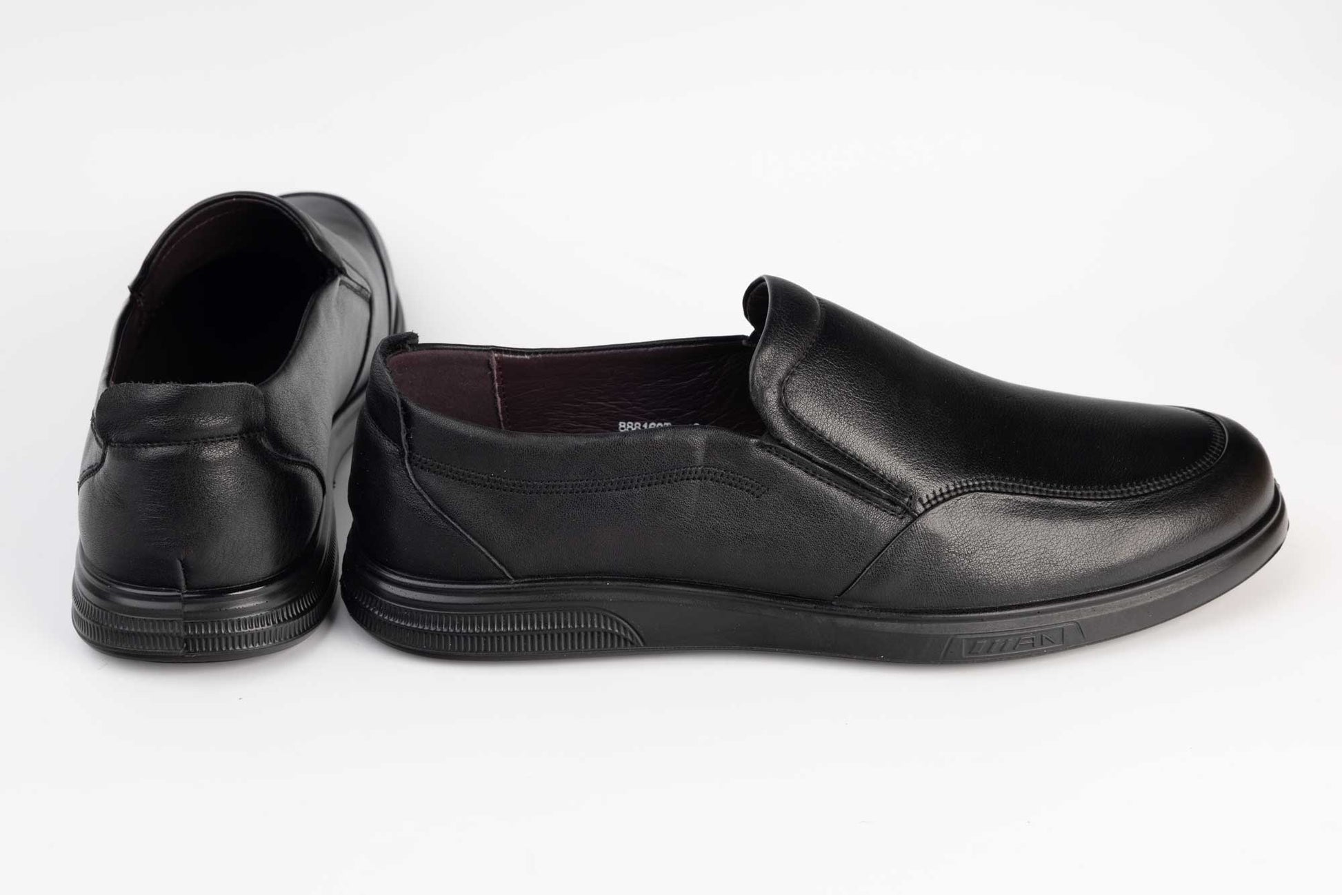 MELS men's shoes made of very fine and soft natural leather without laces and an elastic sole, equipped with a protective cushion in the heel area. Inside, natural leather and a memory insole for maximum comfort. The weight of a single foot is 250 grams. Large sizes 45-46-47.