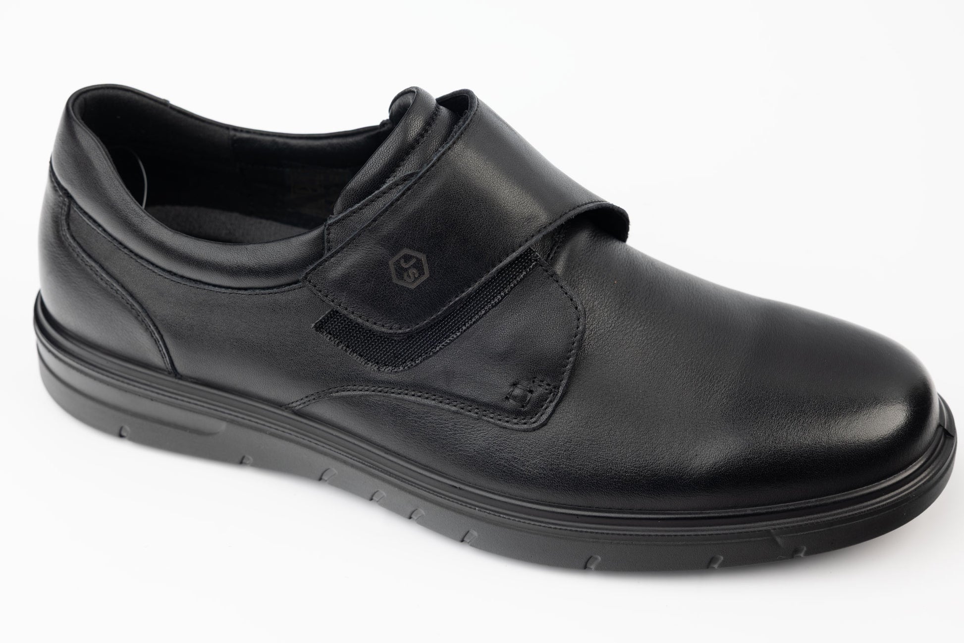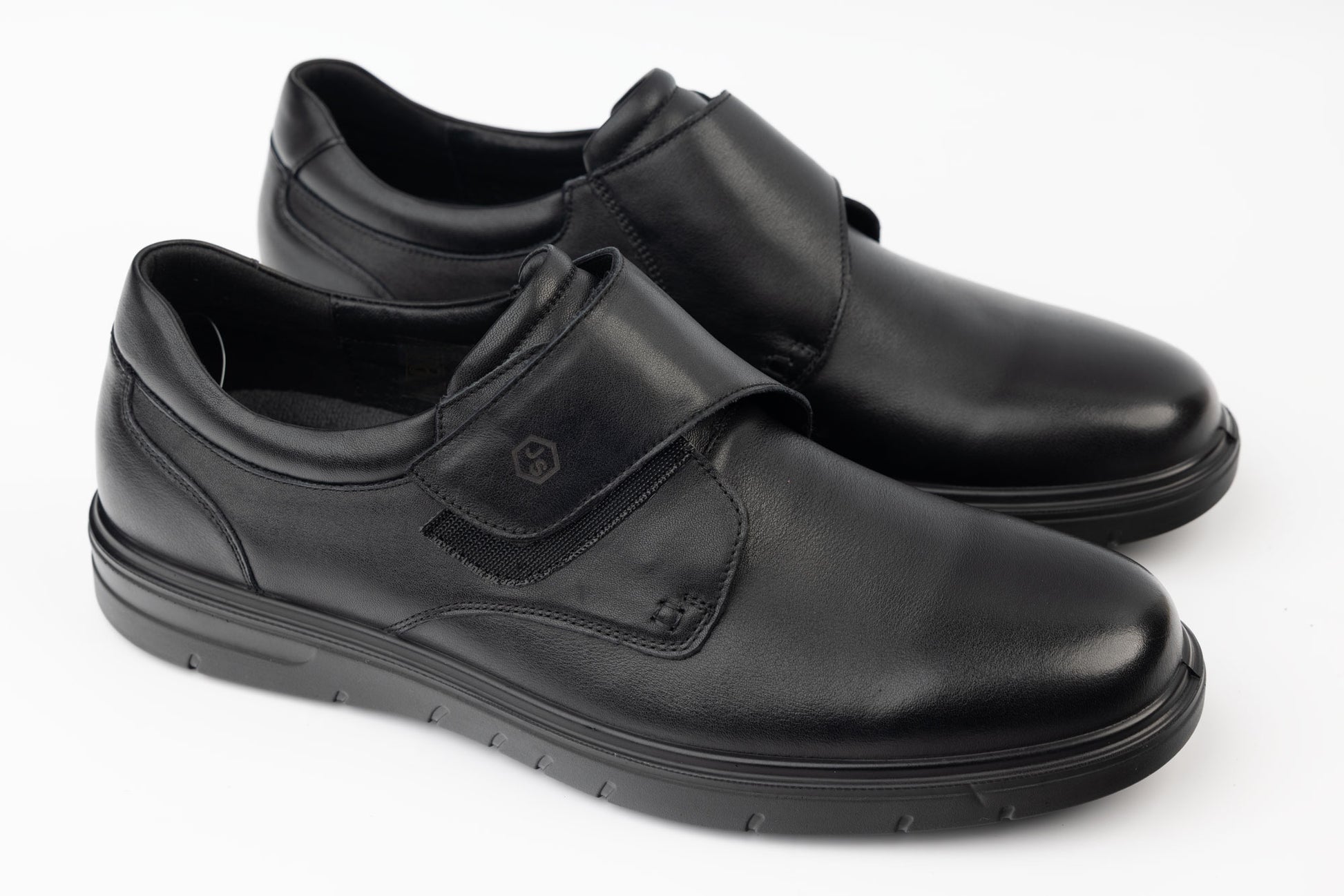 JOHAN men's shoes made of very fine and soft natural leather with Velcro and an elastic sole, equipped with a protective cushion in the heel area. Inside, natural leather and a memory insole for maximum comfort. The weight of a single foot is 350 grams. Sizes from 40 to 46 on a wide foot.