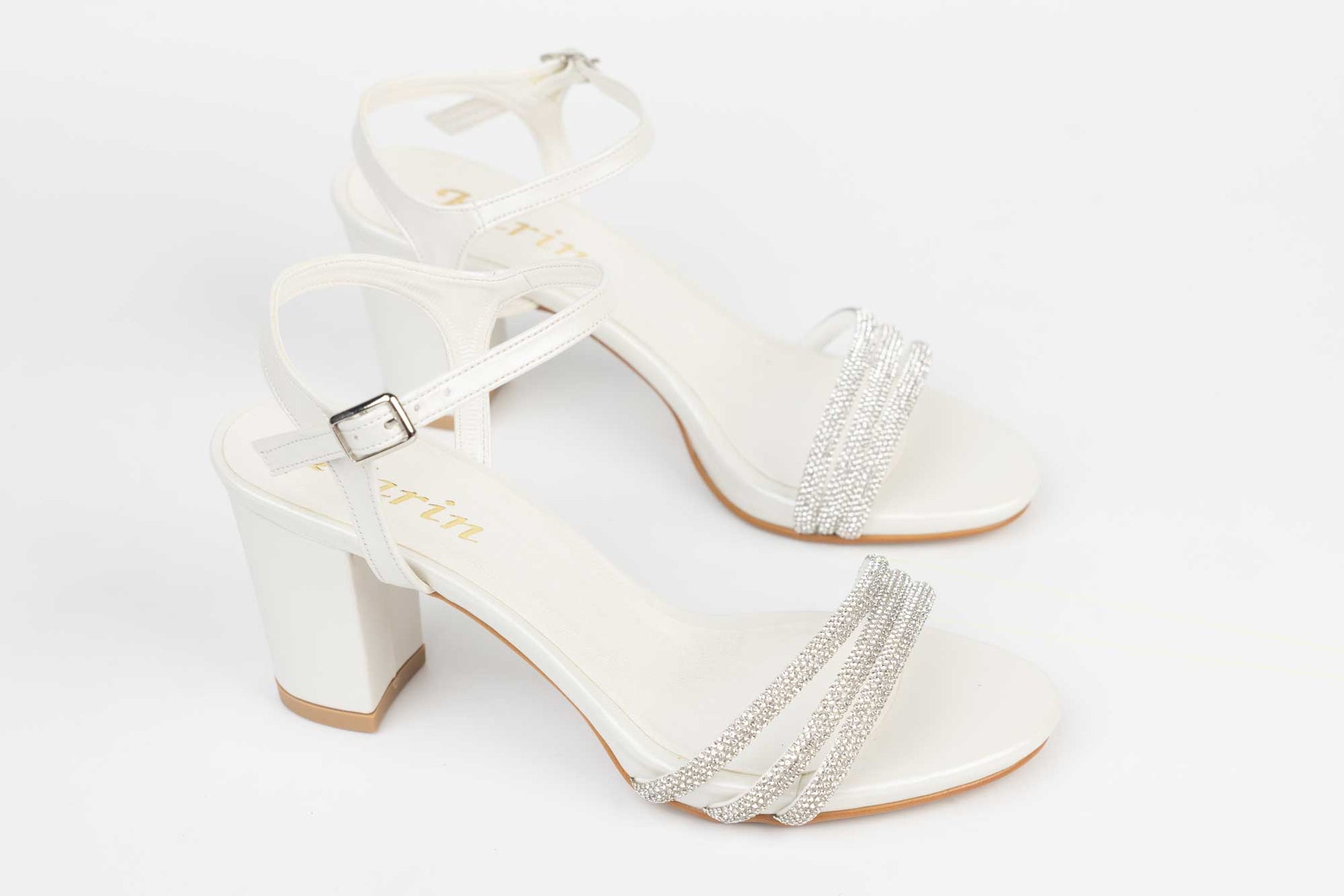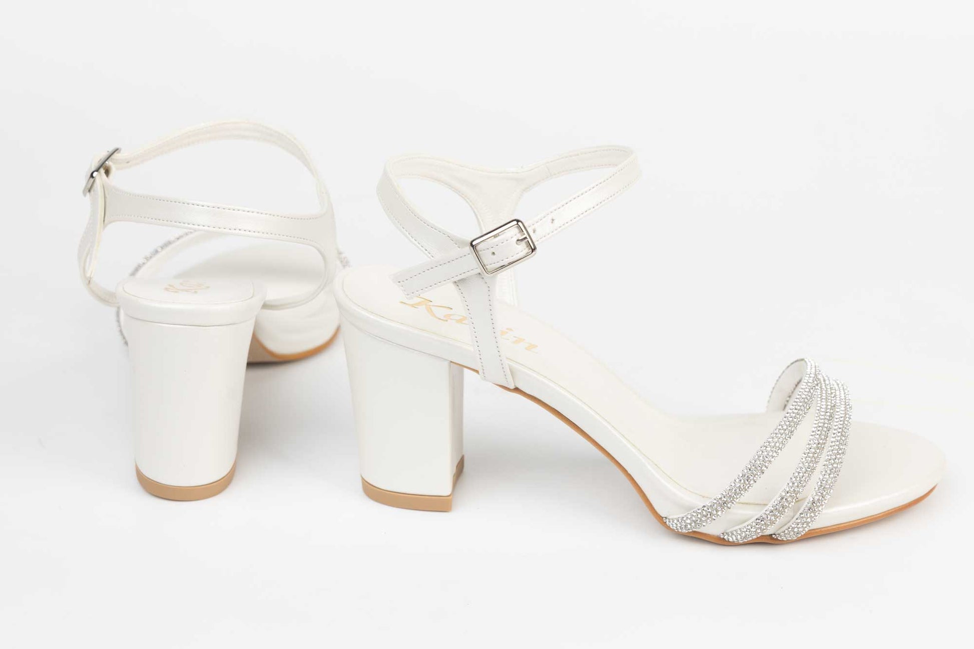 KARIN women's sandals made of quality eco-leather with a thick heel of 6 cm. The weight of a single foot is 218 grams. The fastening is done with a strap above the ankle for better fixation of the foot. The front part is made of 3 straps with crystals which makes this sandal very elegant and comfortable.