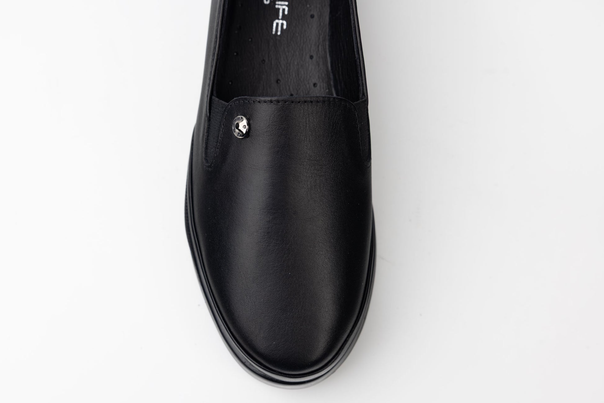 LSD women's shoes made of natural leather with a metal accessory on the front, very soft leather that offers maximum comfort for long wear. The sole is light, flexible and on the inside has a memory insole. The weight of a single foot is 280 grams. Recommended for wide feet or with mounting. - sizes from 36 to 42.