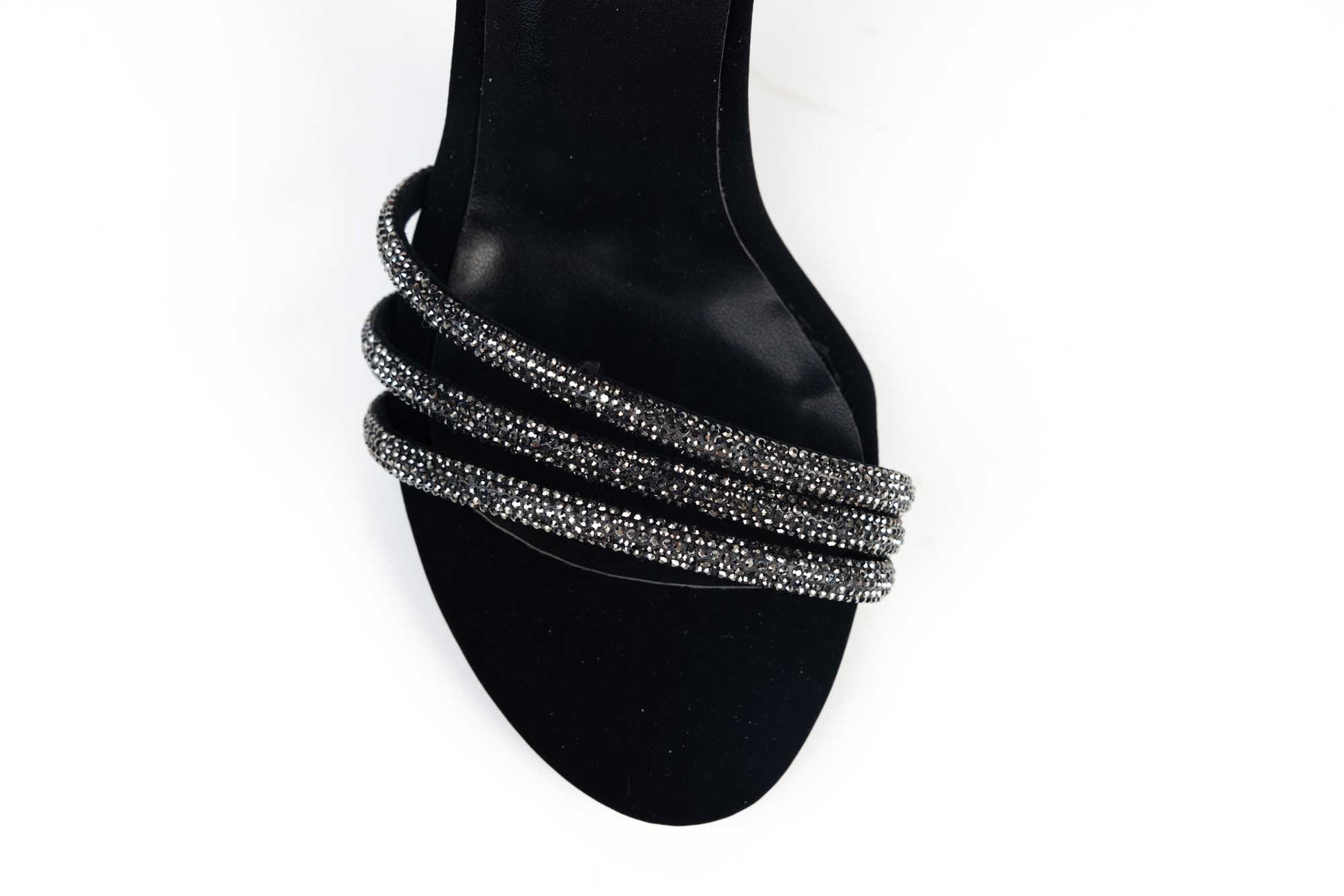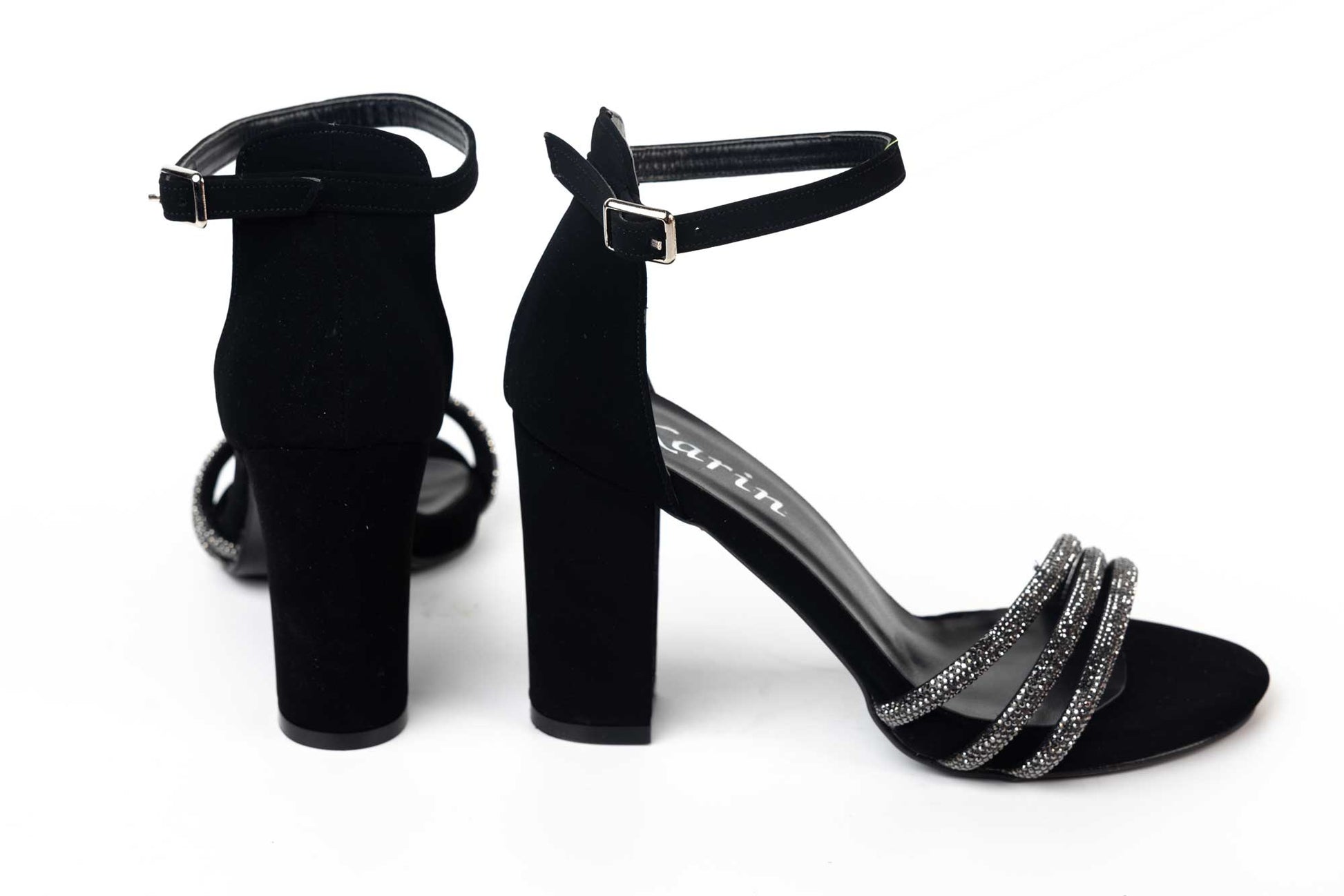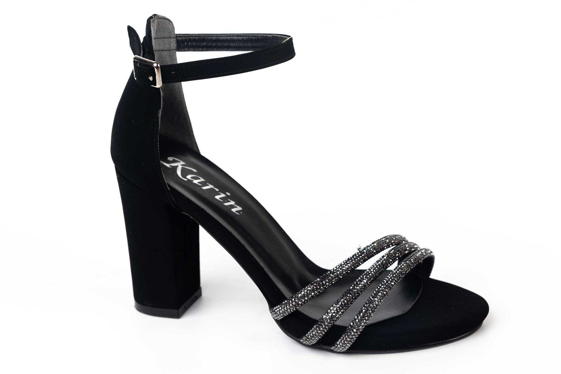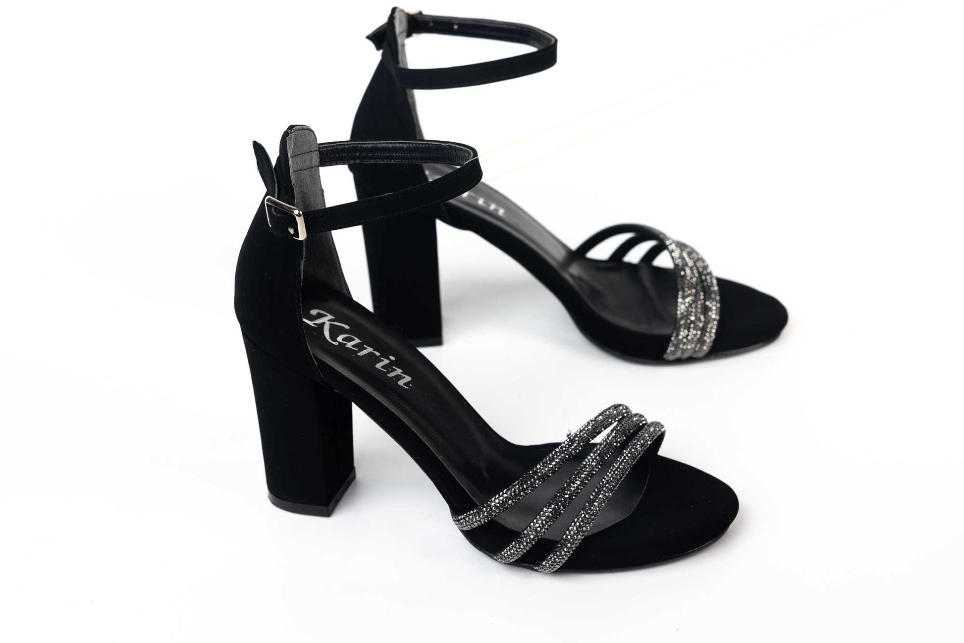 KARIN women's sandals made of quality eco-leather with a thick heel of 7 cm. The weight of a single foot is 218 grams. The fastening is done with a strap above the ankle for better fixation of the foot. The front part is made of 3 straps with crystals which makes this sandal very elegant and comfortable.