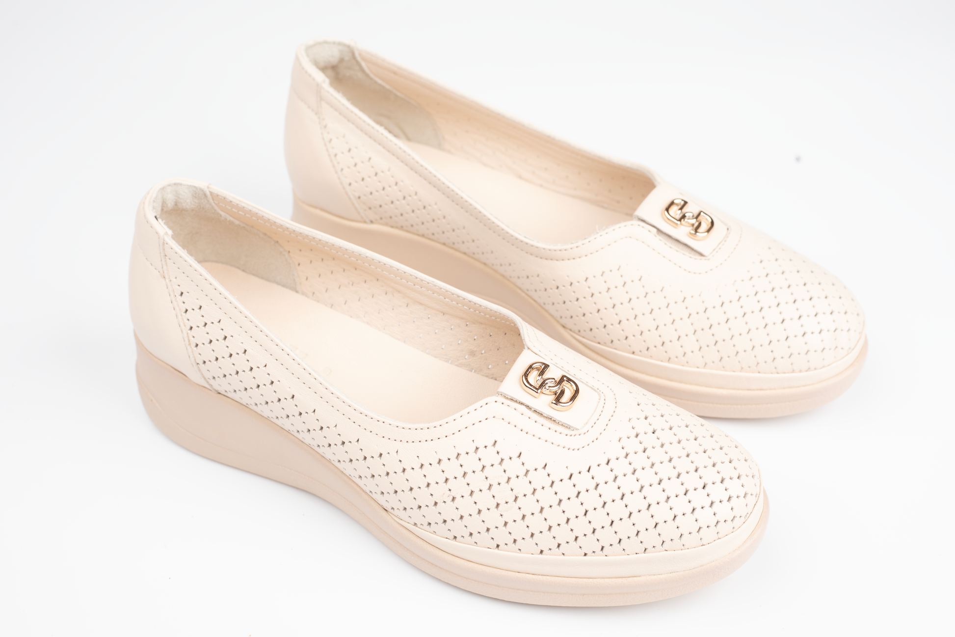 Pantofi damă ortopedici piele naturală PERLA 3400 Bej perforat