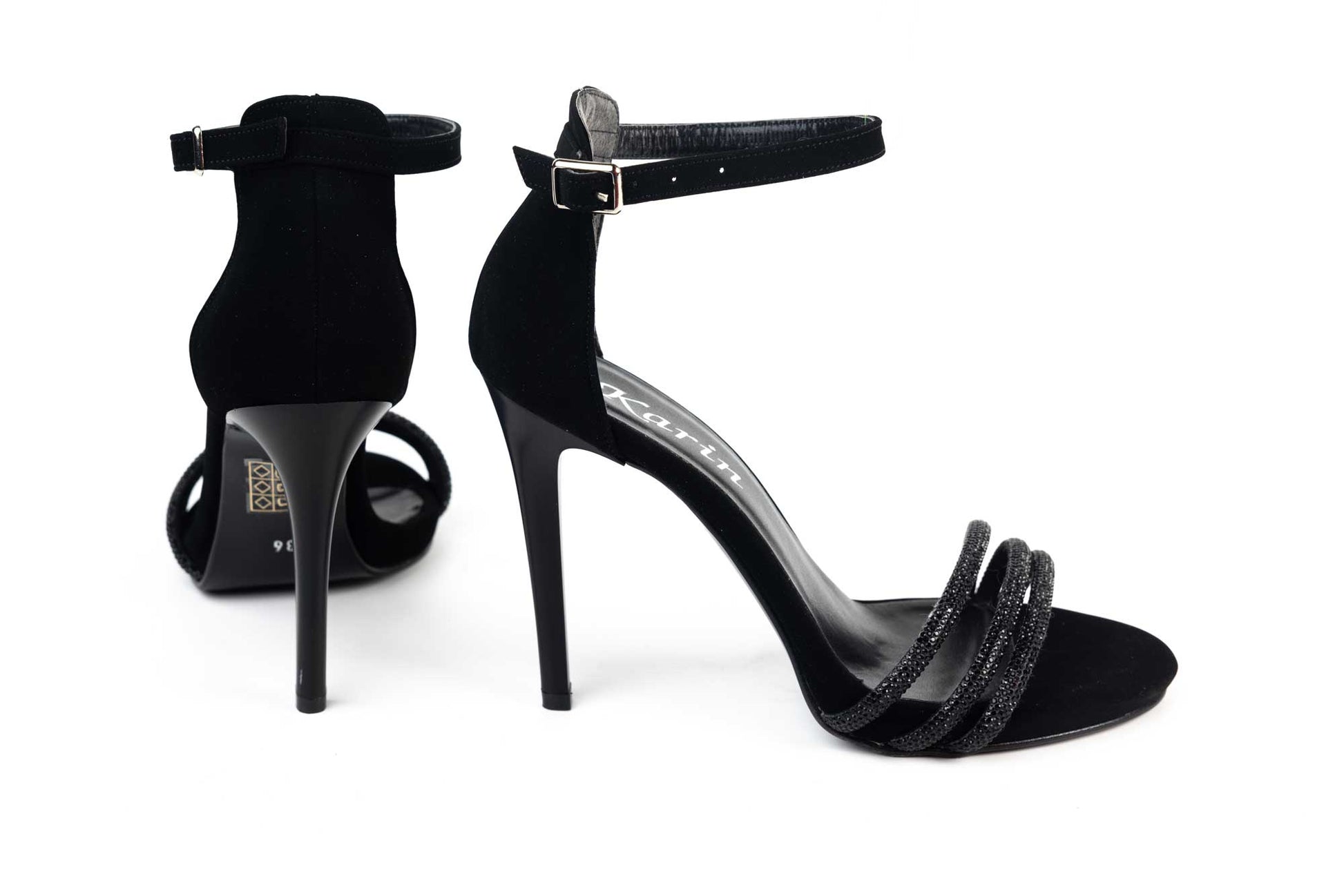 KARIN women's sandals made of quality eco-leather with a 10 cm high stiletto heel. The weight of a single foot is 218 grams. The fastening is done with a strap above the ankle for better fixation of the foot. The front part is made of 3 straps with crystals which makes this sandal very elegant and comfortable.