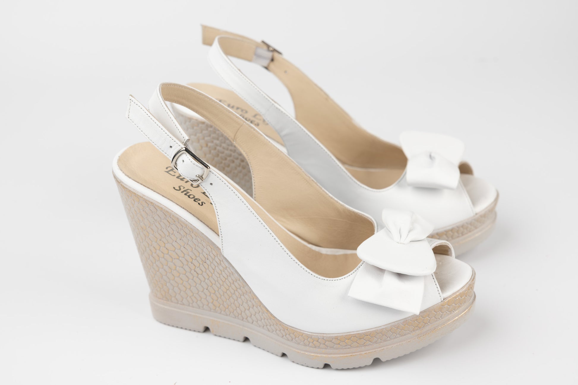 Cut-out bridal shoes made of genuine leather PERLA 3314 Pearl white
