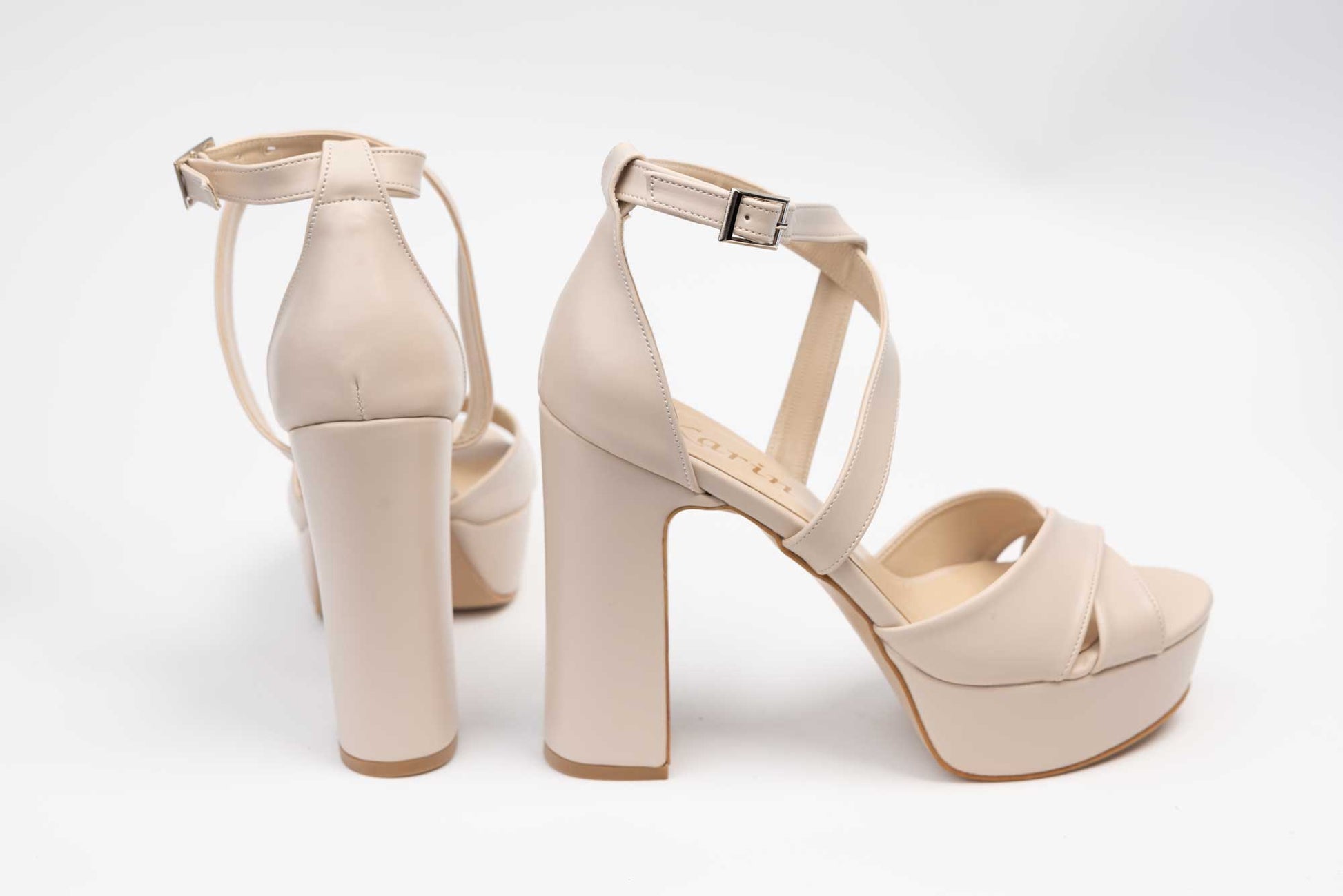 KARIN women's sandals made of premium quality eco-leather with a thick heel of 11 cm. The weight of a single foot is 245 grams. The fastening is done with 2 thin X-shaped straps above the ankle for better fixation of the foot. The front part is made of 2 X-shaped straps which makes this sandal very elegant and comfortable thanks to the 3.5 cm platform which makes the inclination of the foot smooth and comfortable.