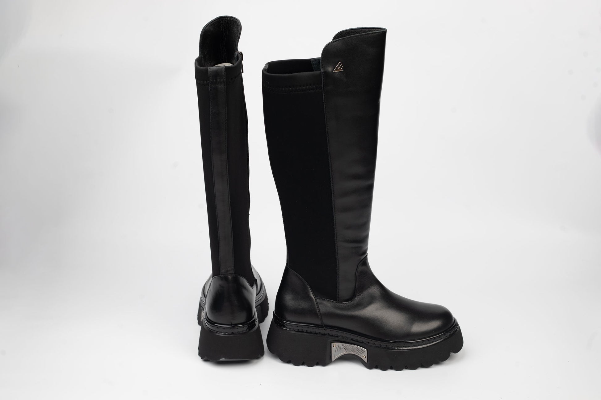 DOGATI women's boots made of natural leather combined with moisture-resistant stretch fabric at the back, with a side zipper and a thick, non-slip serrated sole with a round toe, comfortable and lightweight. The weight of a single leg is 340 grams.