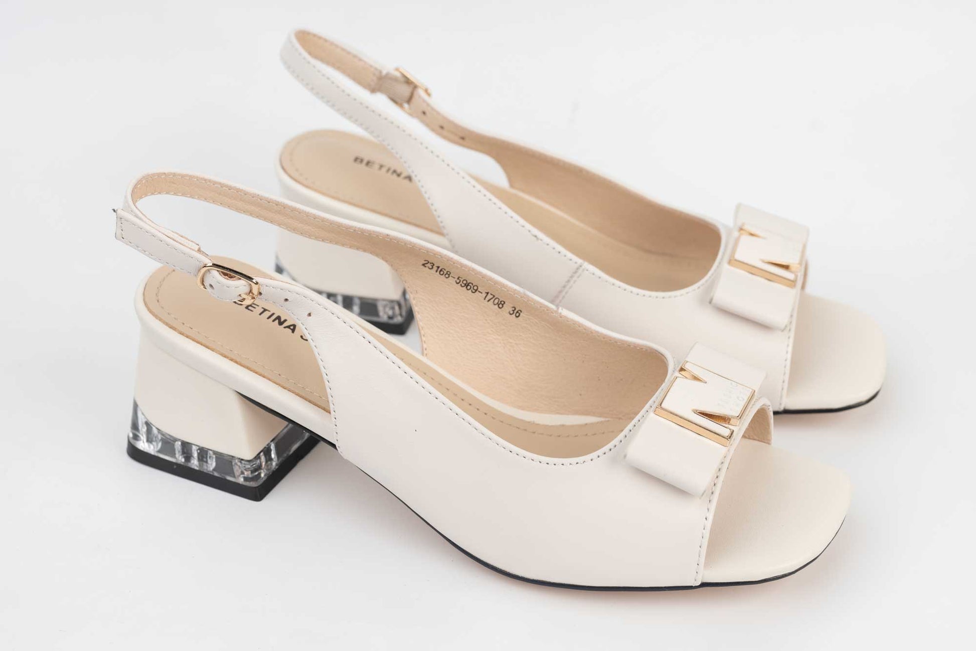 BETINA sandals made of natural leather with a thin strap fastening with a fine golden buckle. The thick square heel is 3 cm high and at the front it has a wide strap over the toes which makes this model particularly comfortable to wear. The weight of a single foot is 250 grams.