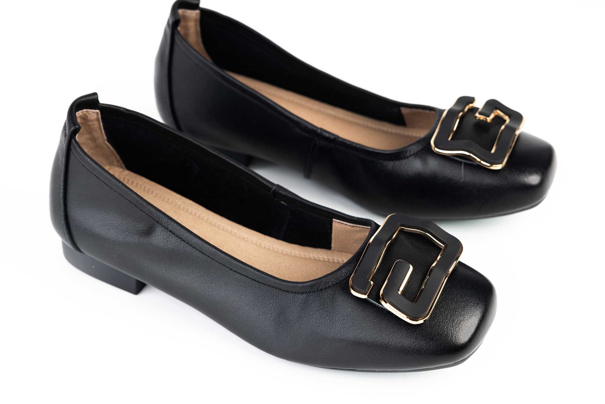BETINA women's shoes made of natural leather with a molded sole and a low heel of 1 cm, accessorized with a special metal accessory. The leather is very soft and offers maximum comfort for long wear. The sole is light, flexible and has a memory insole on the inside. The weight of a single foot is 197 grams.