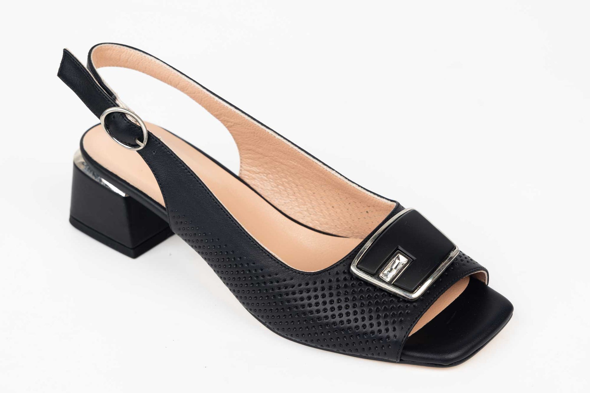LSD women's sandals made of natural leather with a 3 cm square heel and a thin strap fastening in a delicate buckle at the back. Very comfortable footbed and soft natural leather accessorized on the toe make this model appreciated.