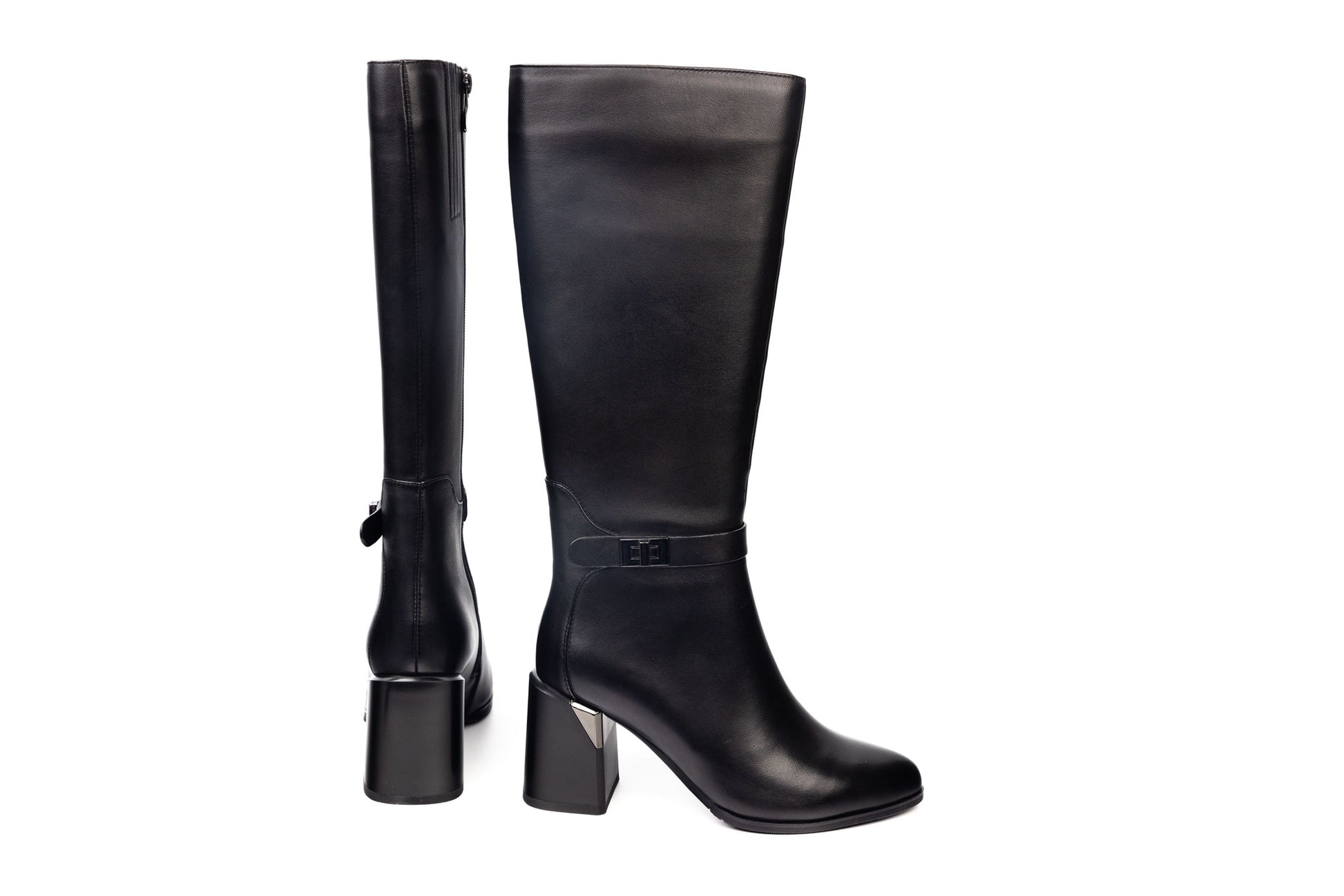 BETINA women's boots made of natural leather, fur-lined on the inside, with a 7 cm square heel, a rounded pointed toe and a side zipper. The weight of a single leg is 380 grams.
