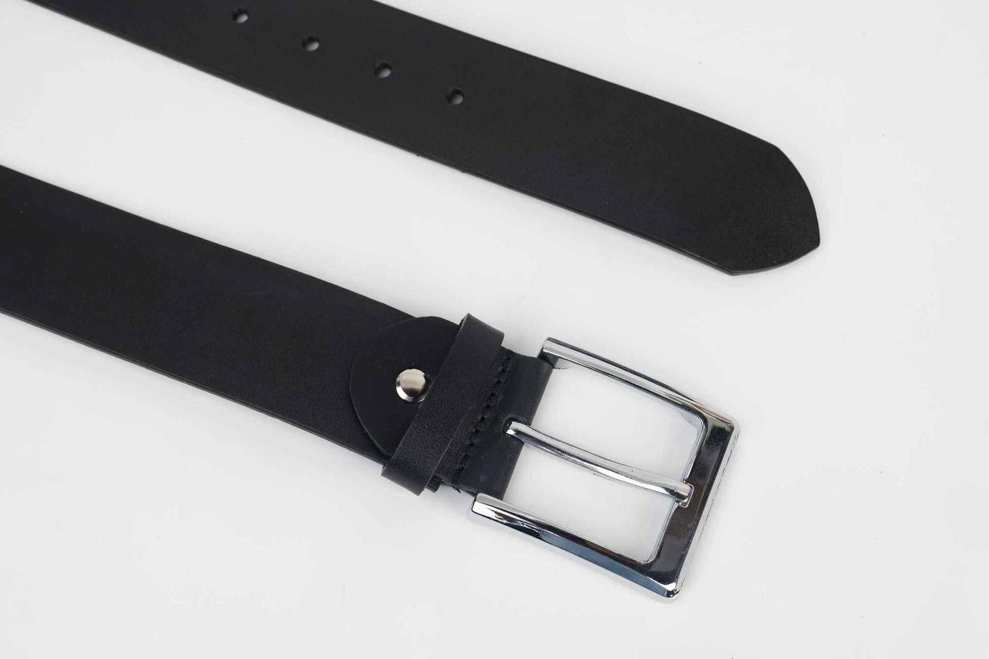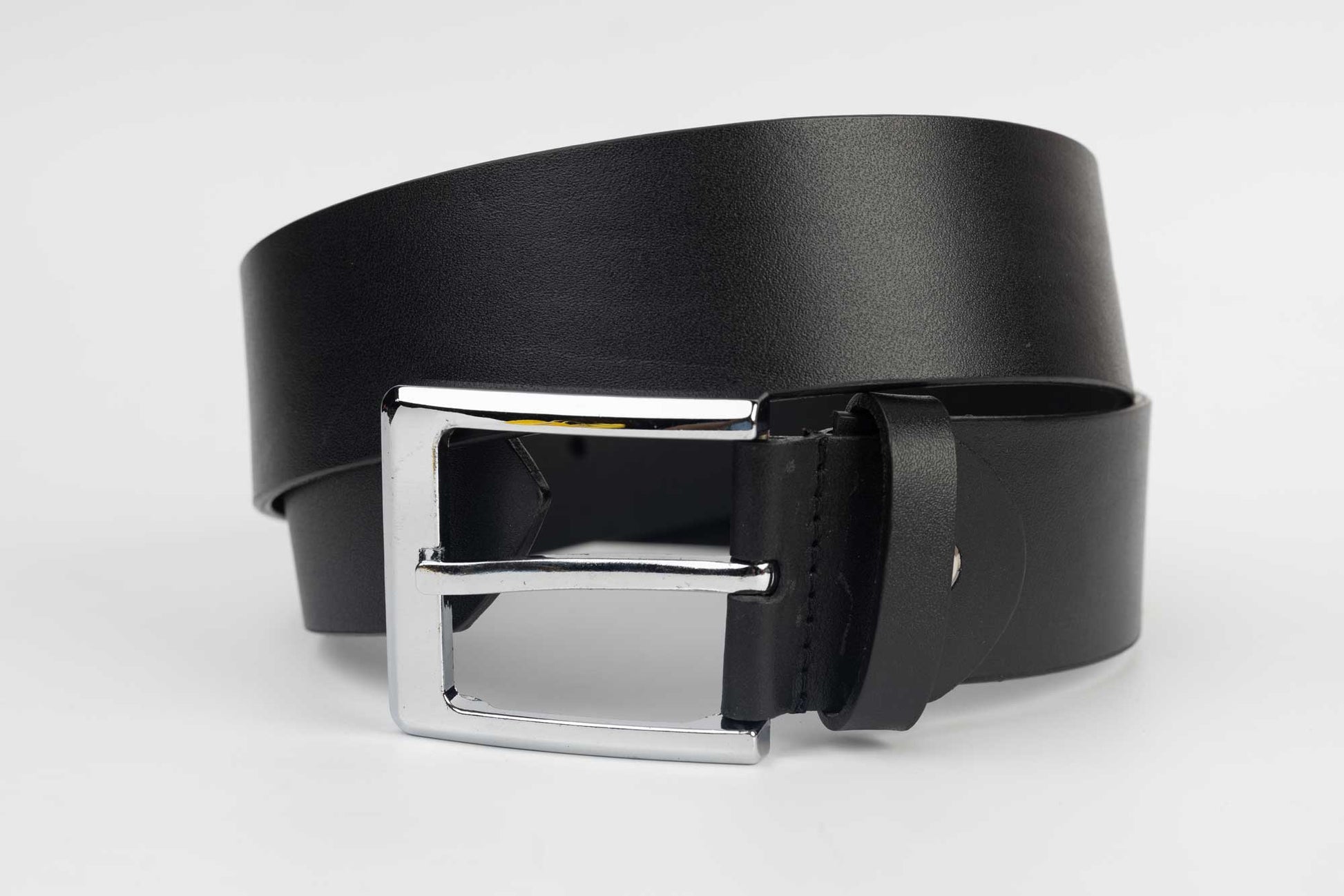 SERENIA men's belt made of black genuine leather with a stainless steel buckle, the belt is 4 cm wide and fits all types of jeans and casual pants.