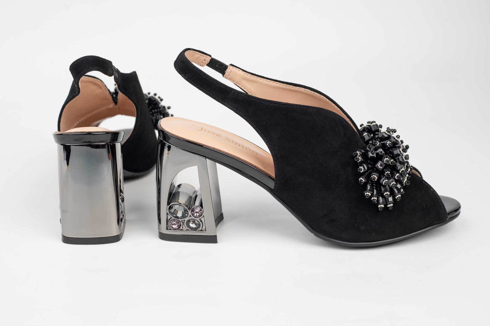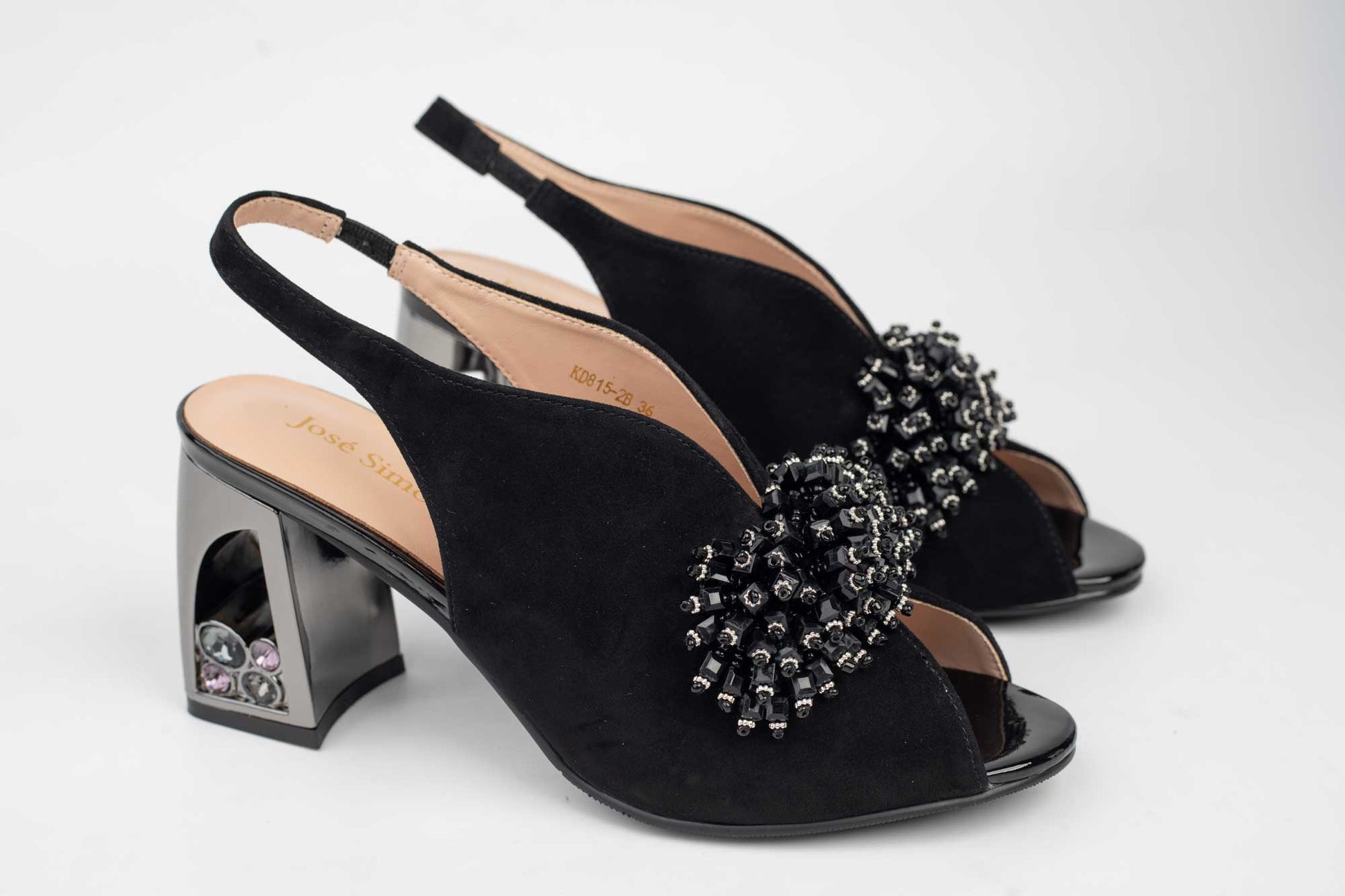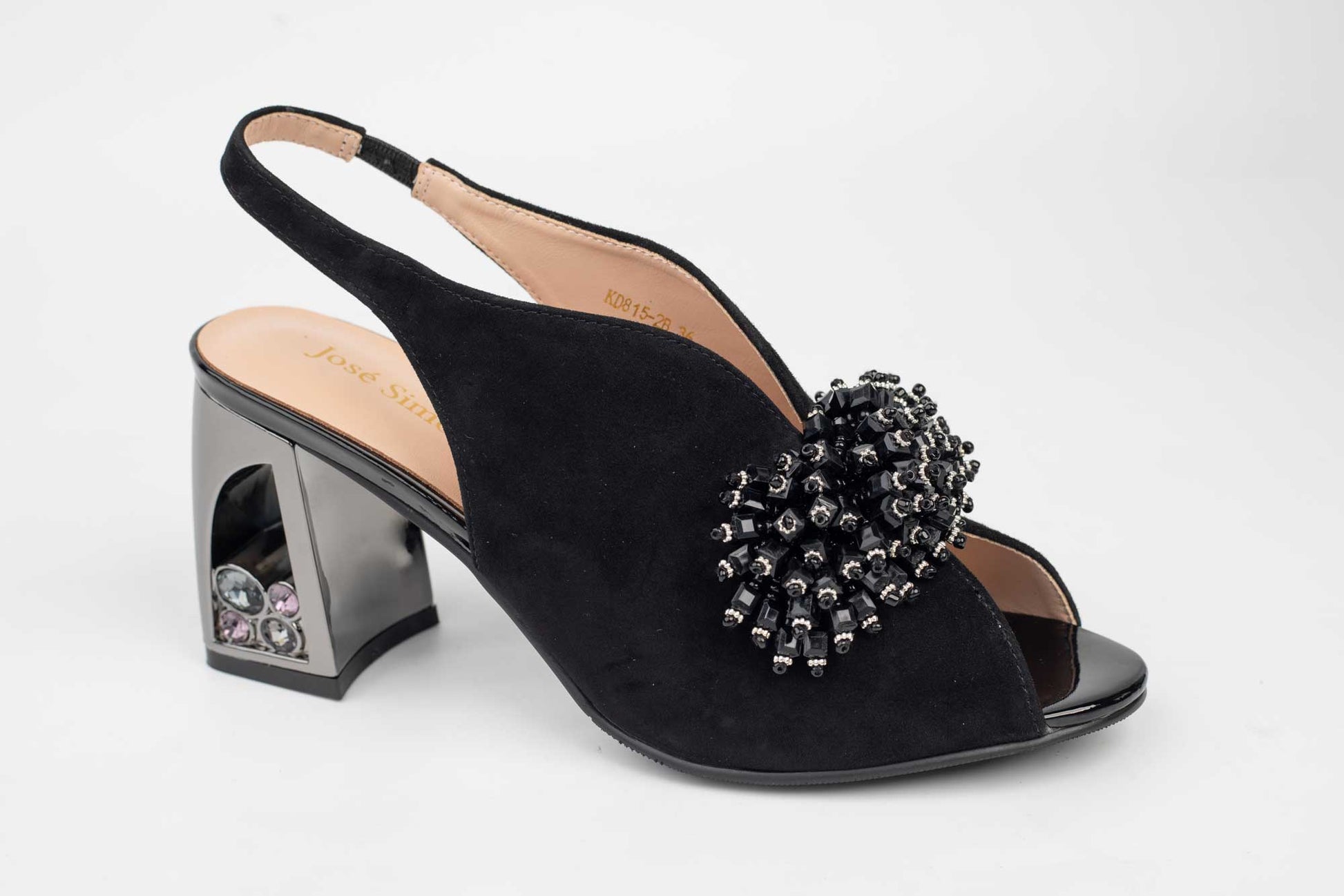 JOSE SIMON women's sandals made of genuine leather, cut at the top and back, and the heel is a thick square 6 cm high, accessorized with a round toe. The weight of a single foot is 225 grams. A black beaded ball accessory is applied to the top of the shoe.
