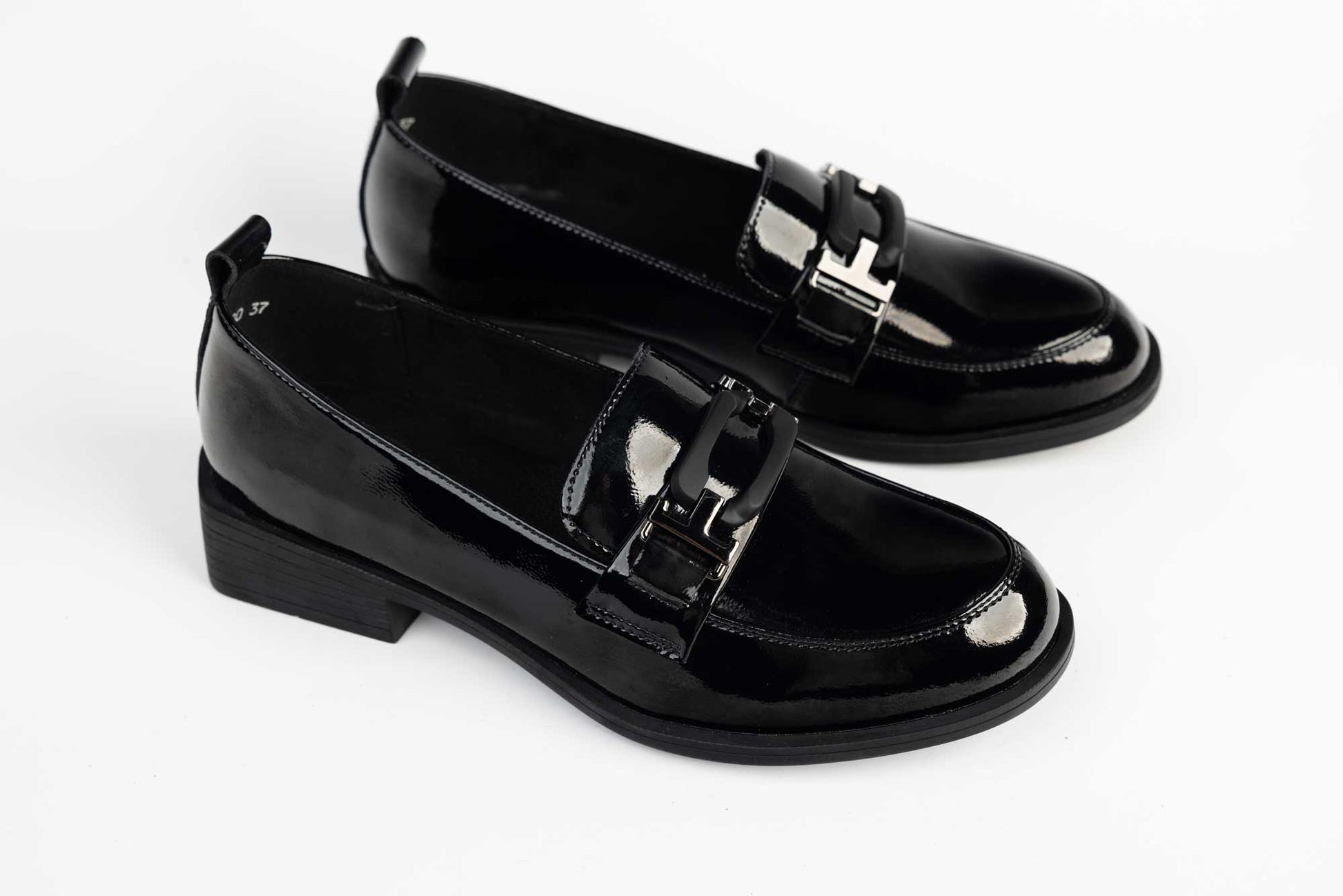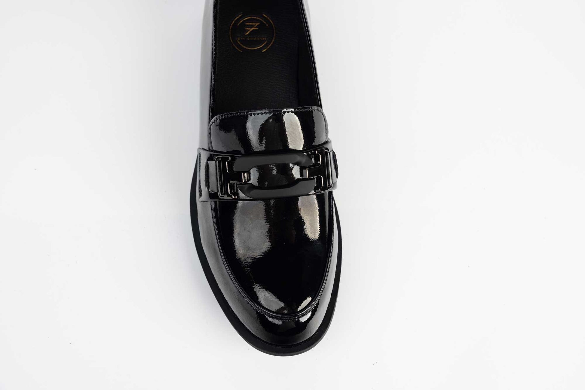FORMAZIONE women's shoes made of natural leather with a simple 2.5 cm square heel. The leather is very soft and offers maximum comfort for long wear. The sole is light, flexible and has a memory foam insole on the inside. A metal accessory is mounted on the front of the shoe.