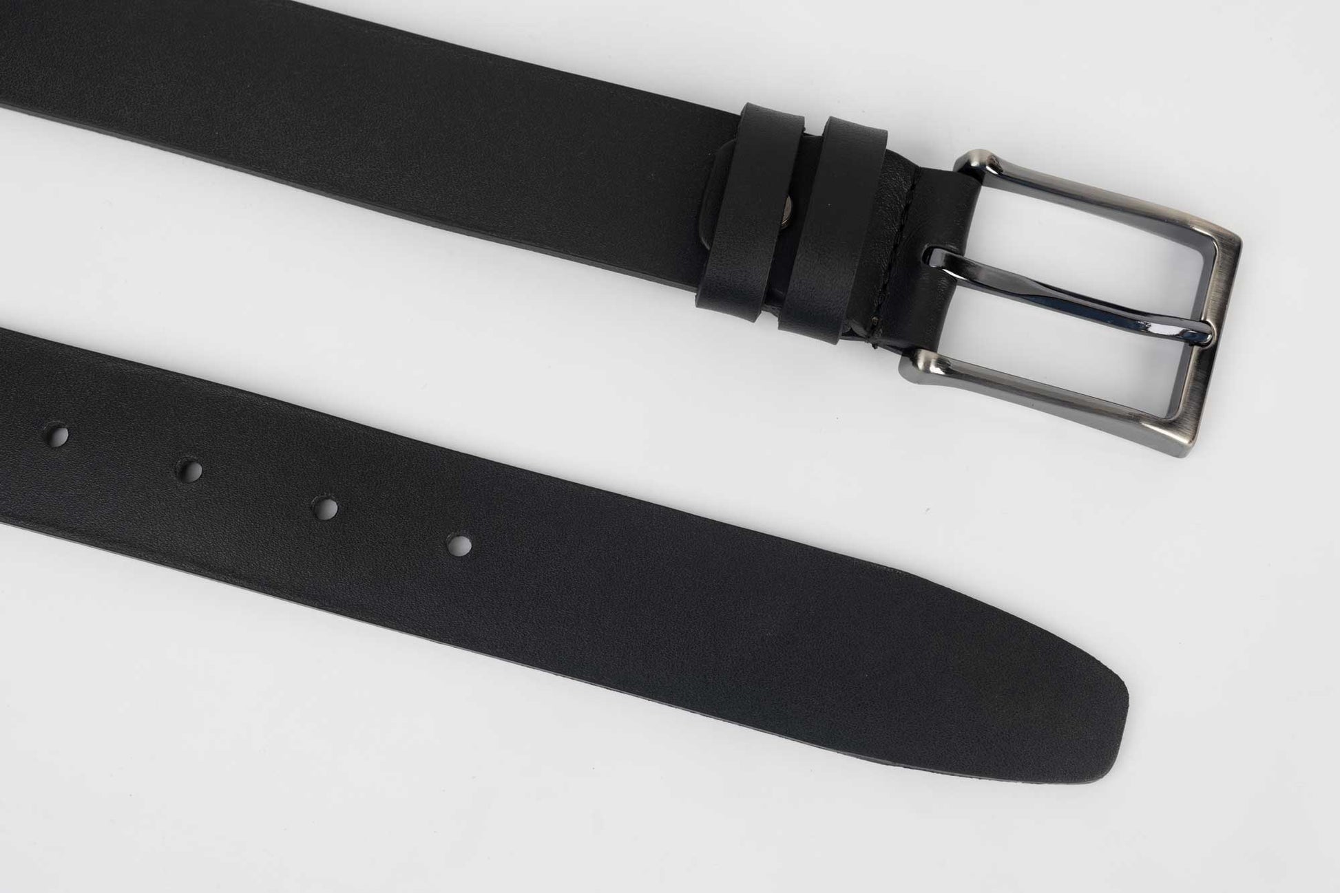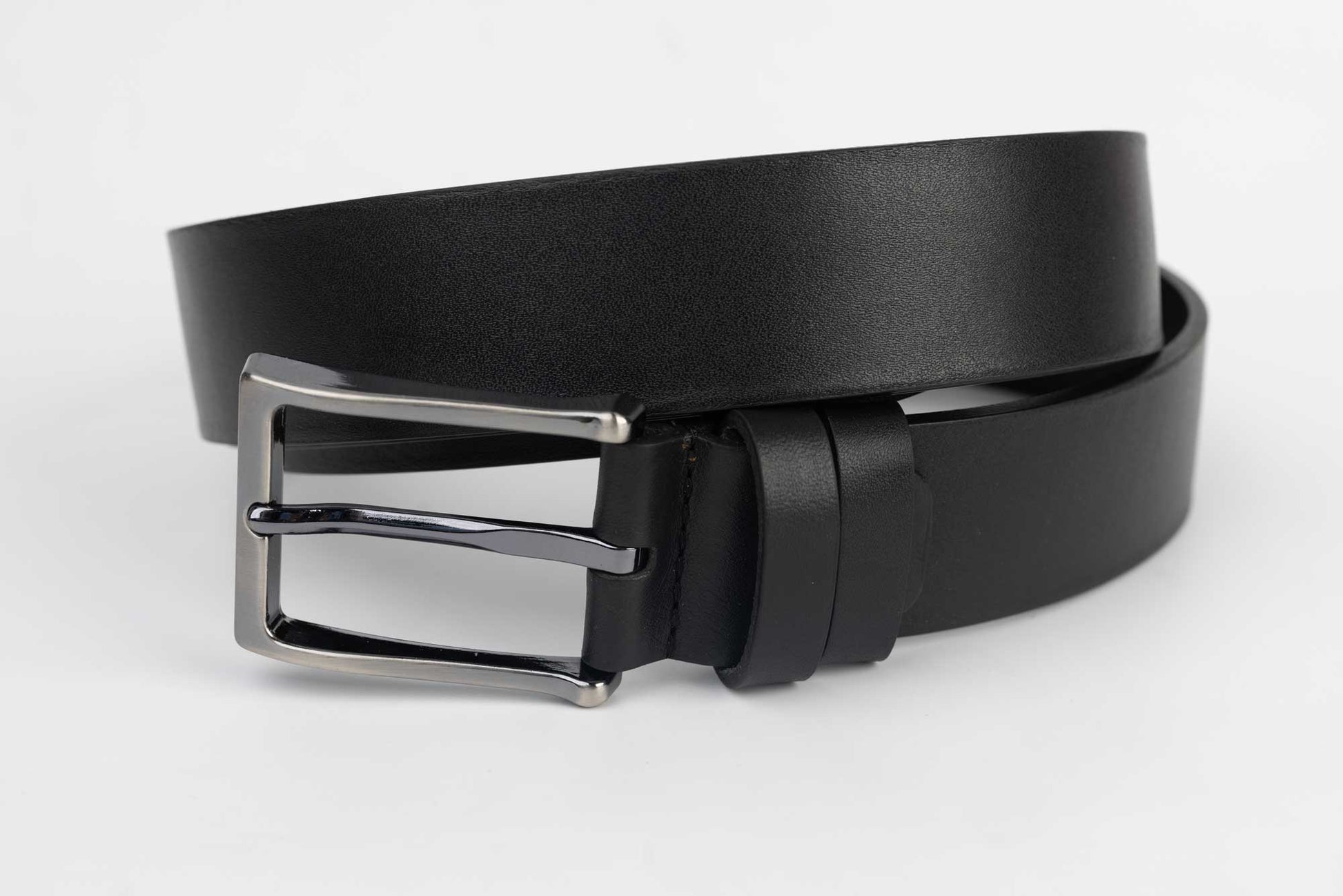 SERENIA men's belt made of natural black leather with a stainless steel buckle, the belt is 3 cm wide and fits all types of suit pants, jeans and casual pants.