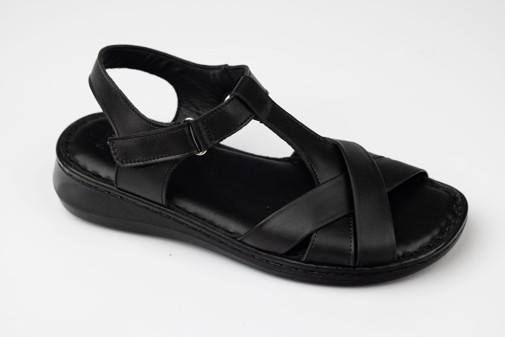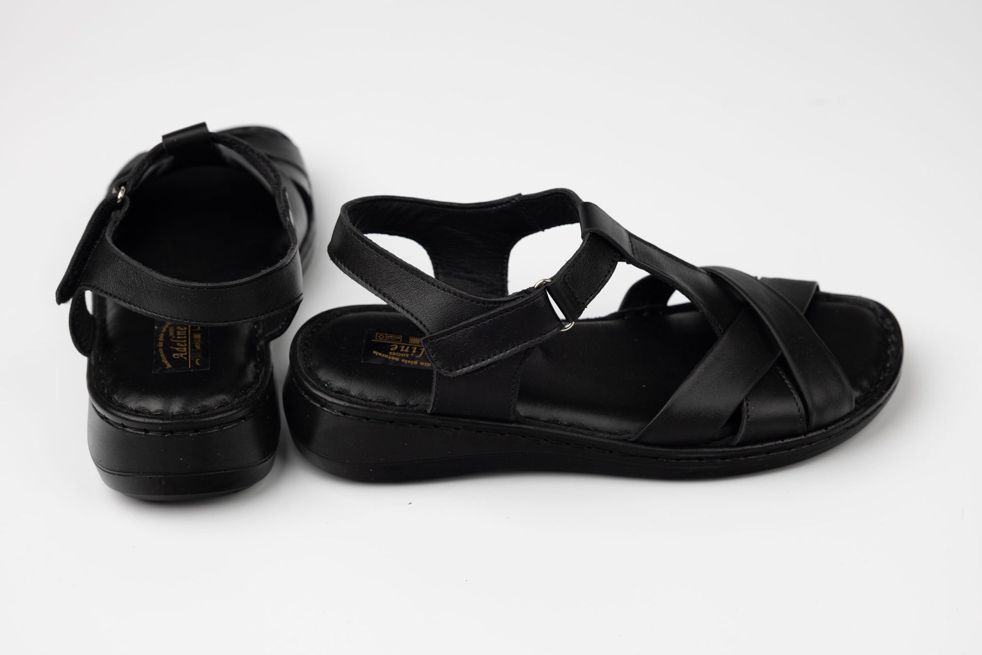 Women's sandals ADELINE made of natural leather with a 3 cm thick sole, lined on the inside with very soft and elastic natural leather. The weight of one foot is 150 grams. Recommended for wide feet with bunions and feet with spurs.