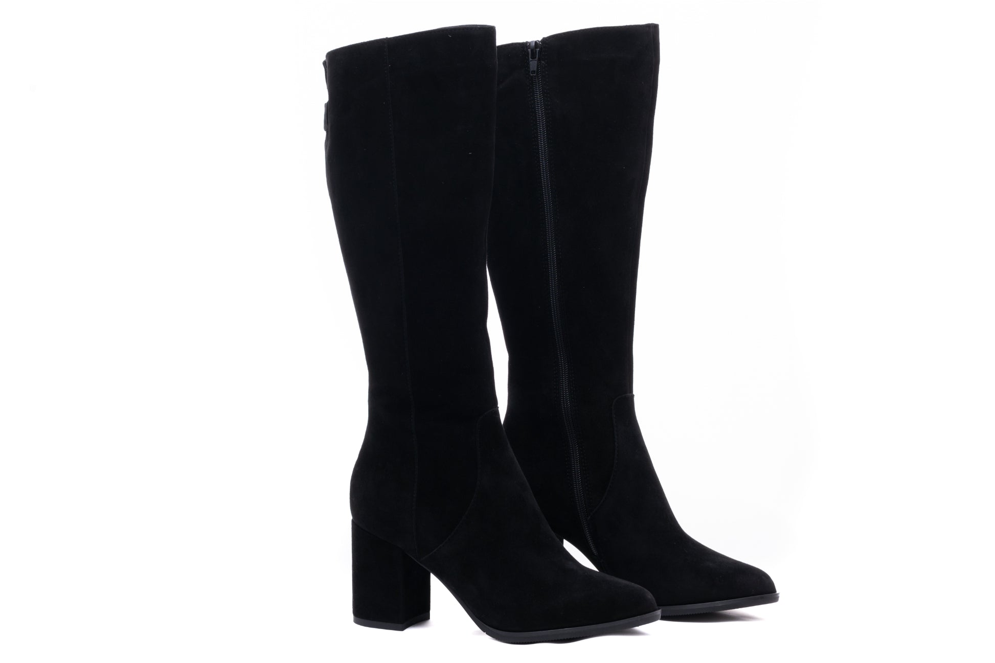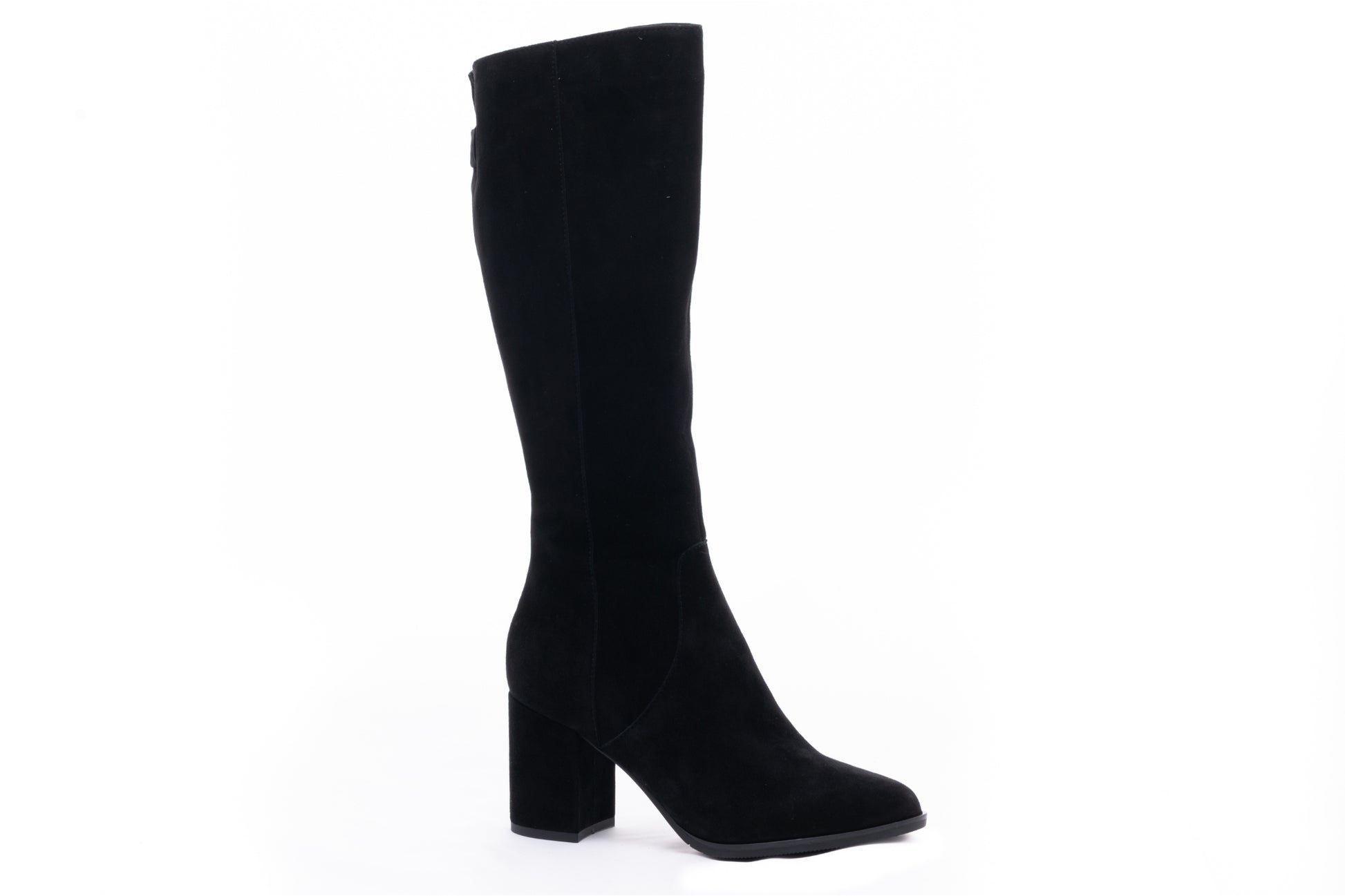 FEELING women's boots made of natural suede, fur-lined on the inside, with a 7 cm square heel, a rounded pointed toe and a side zipper. The weight of a single leg is 350 grams.