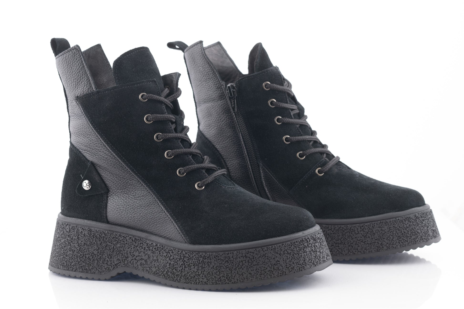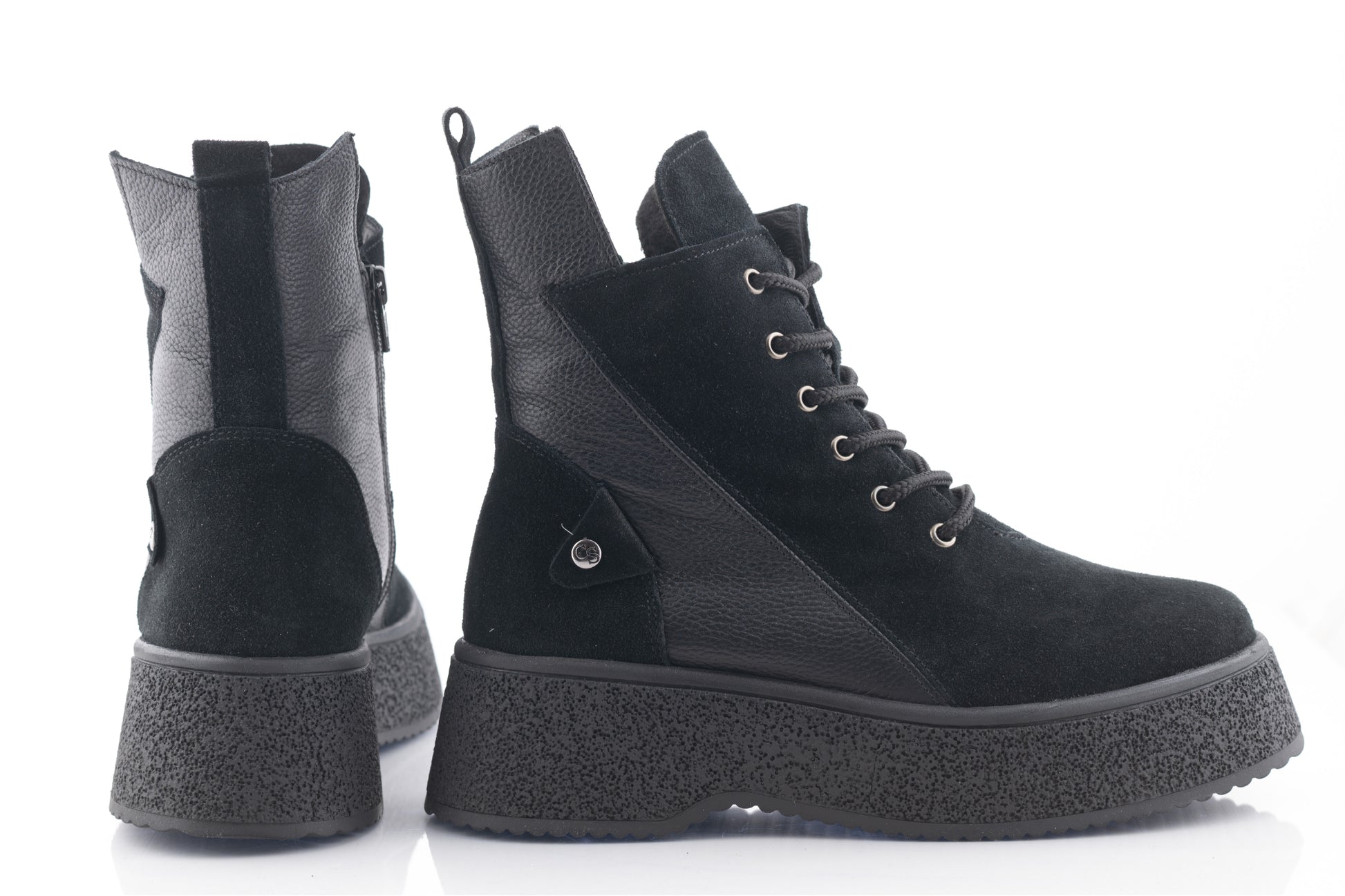 CATALI women's boots made of suede combined with natural leather, fur-lined, with a 6 cm orthopedic sole, side zipper and laces