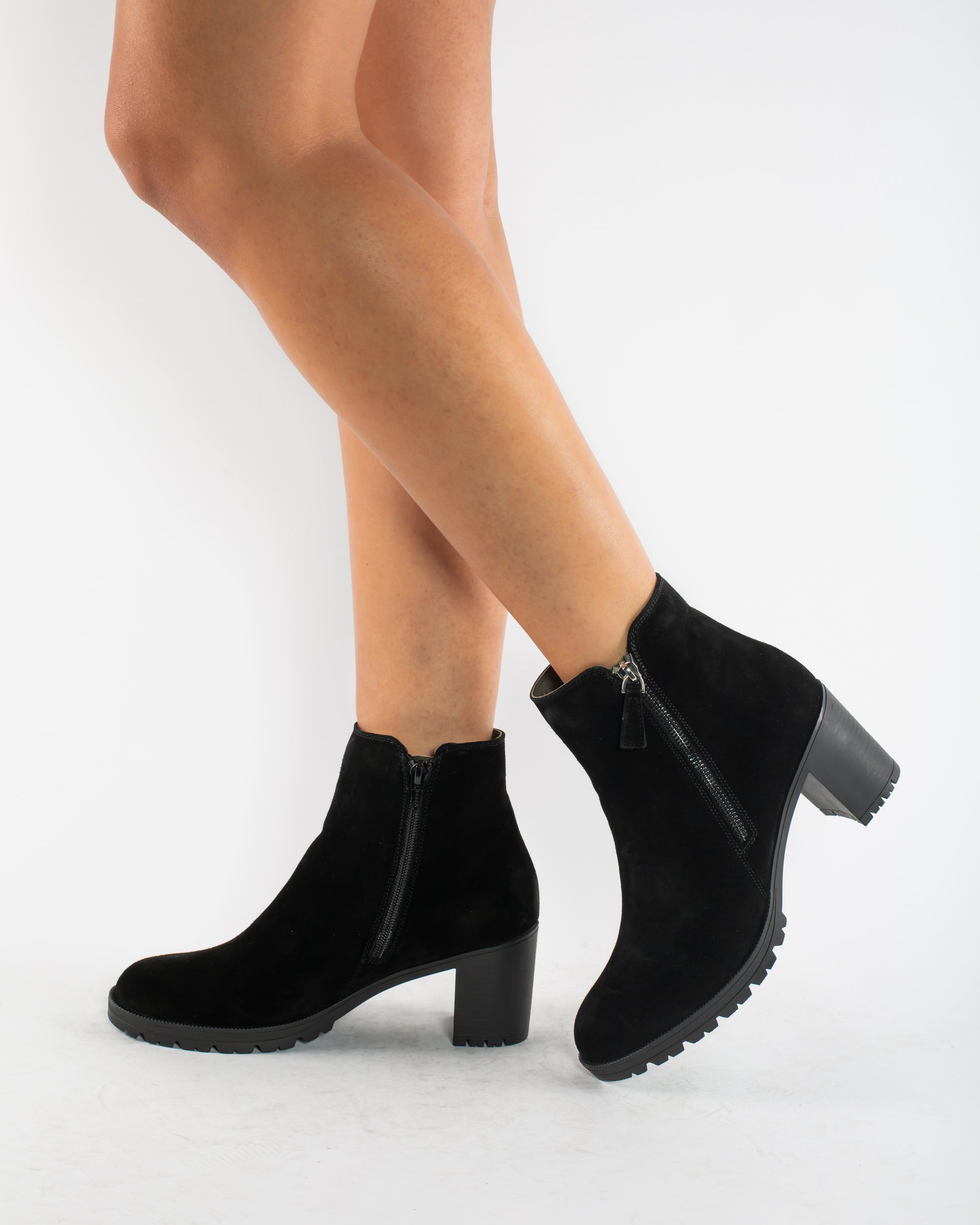 PETER women's boots made of natural suede, fur-lined on the inside and with a molded sole, 5 cm high and with a zipper on both sides of the ankle.