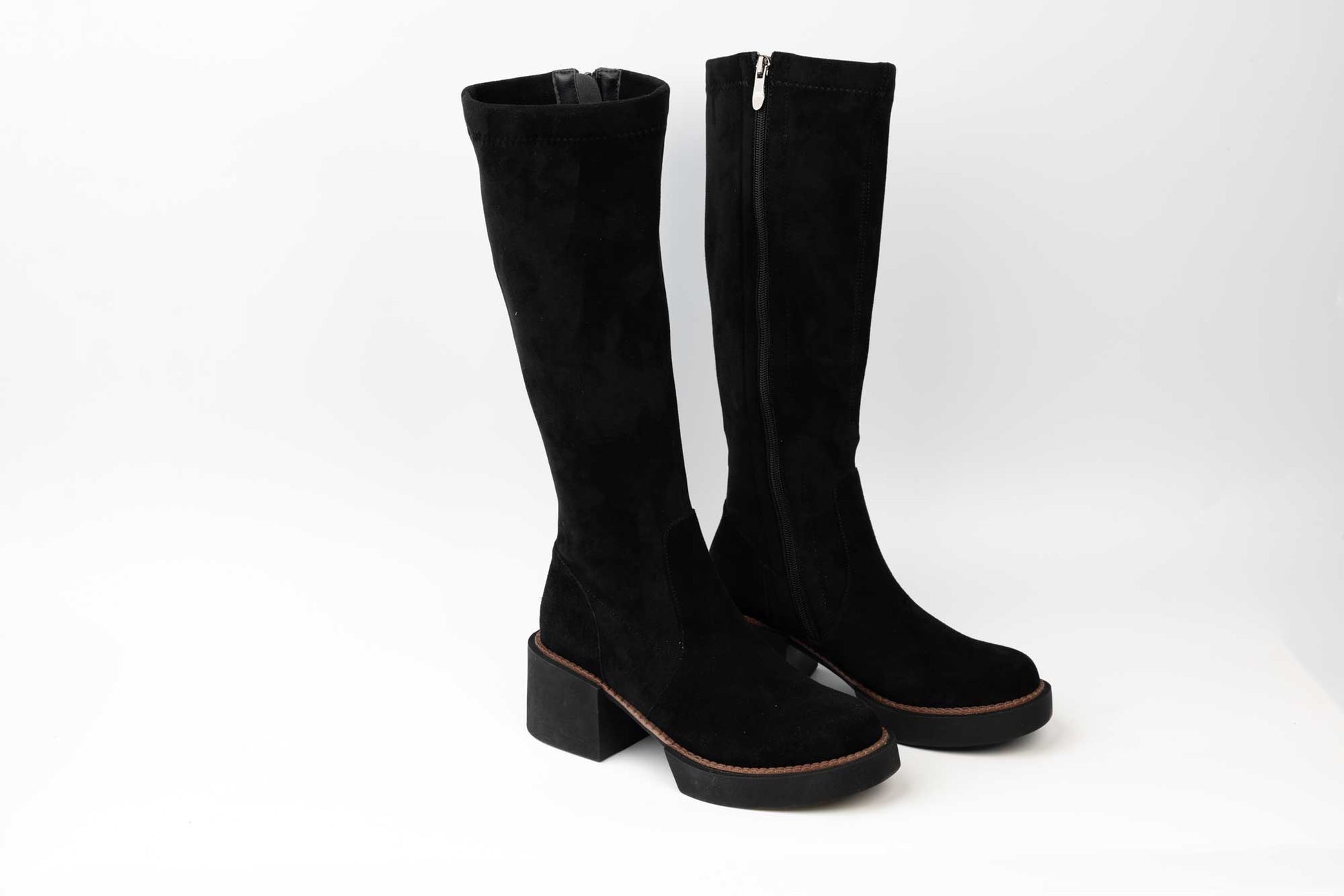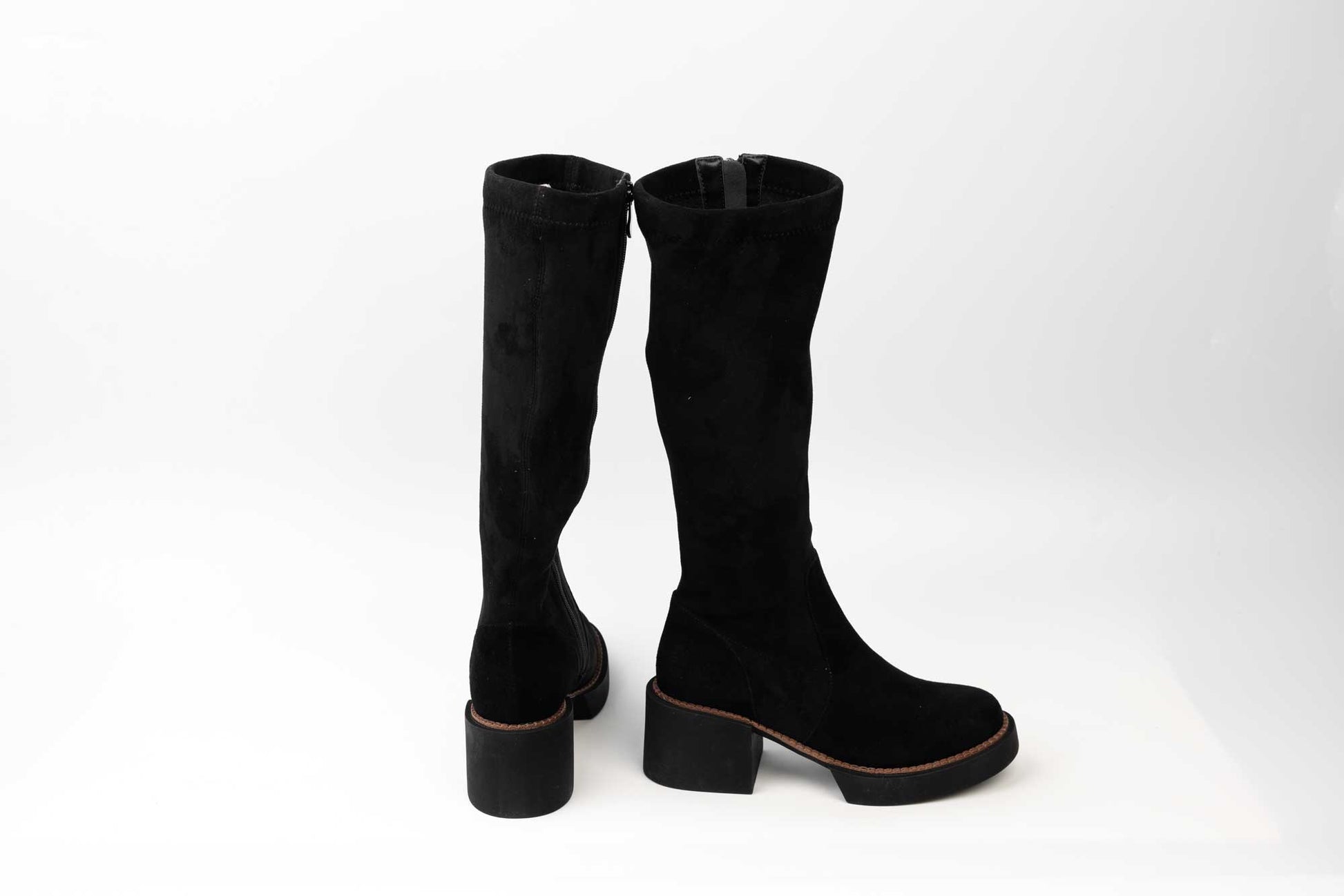 FEELING women's boots made of suede combined with premium eco elastic stretch, fur-lined on the inside, with a 7 cm square heel, rounded toe and side zipper.