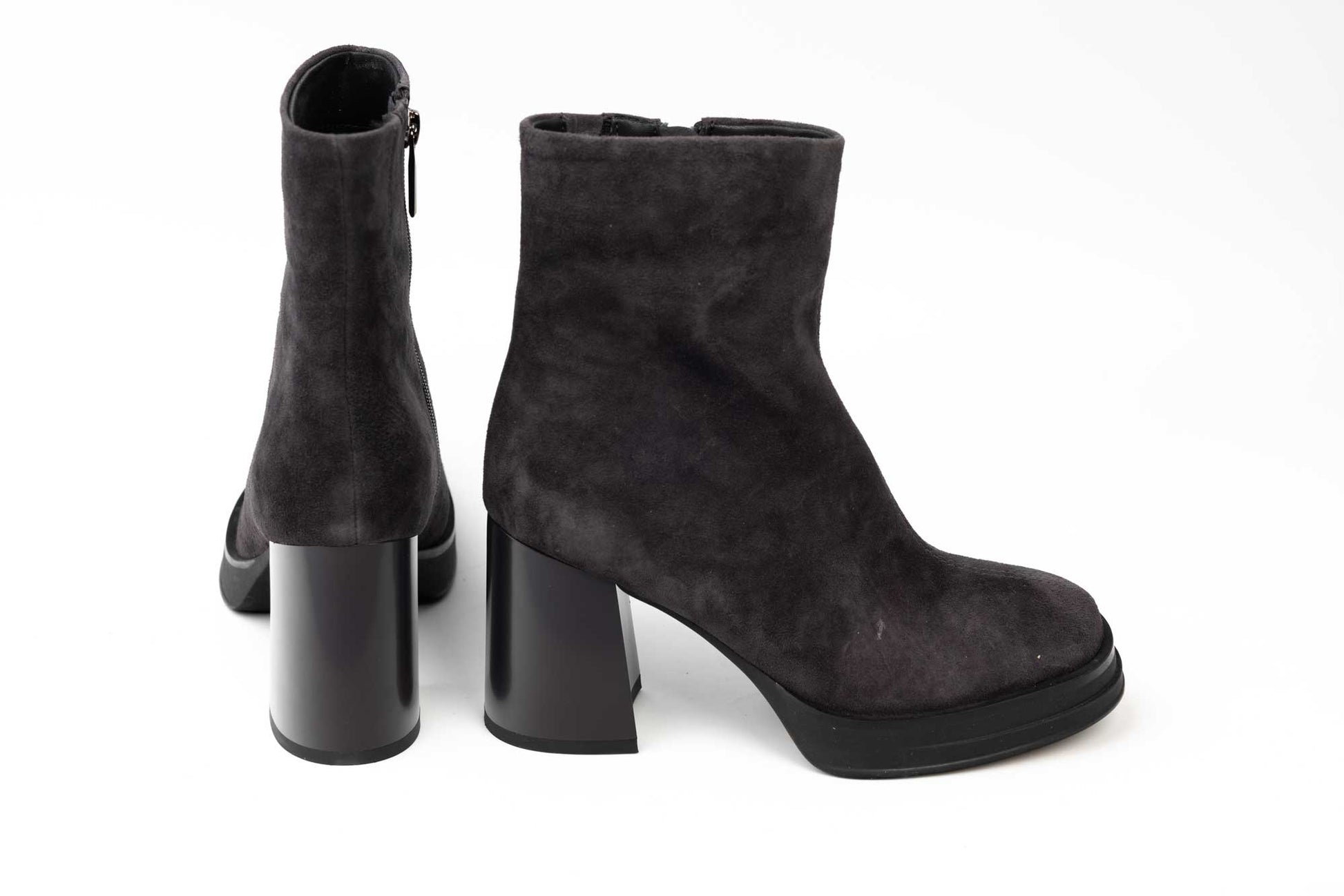 JOSE SIMON women's boots made of genuine suede leather with a side zipper, have a square heel with a height of 9 cm and a platform of 2 cm. The weight of a single leg is 315 grams.