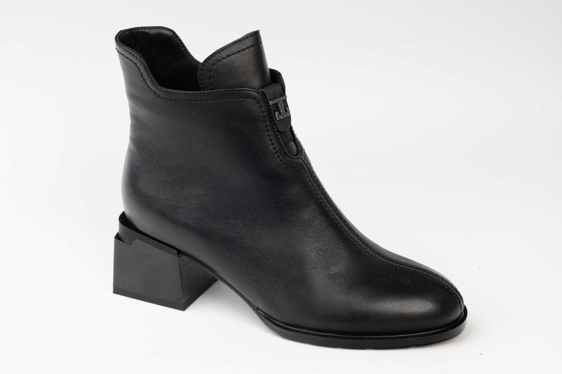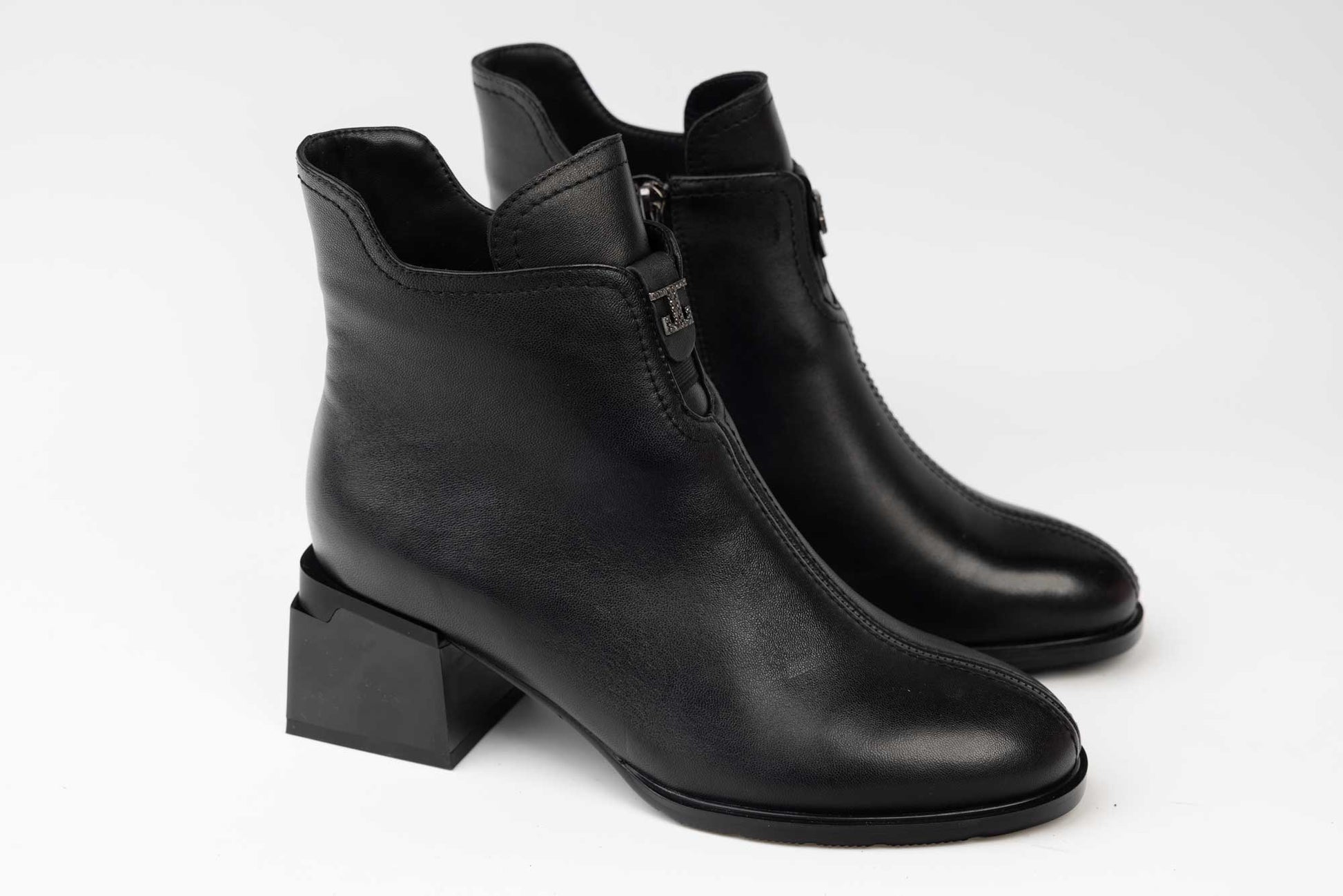JOSE SIMON women's boots made of waterproof natural leather with a side zipper, fur on the inside and a 6.5 cm square heel. The weight of a single boot is 348 grams.