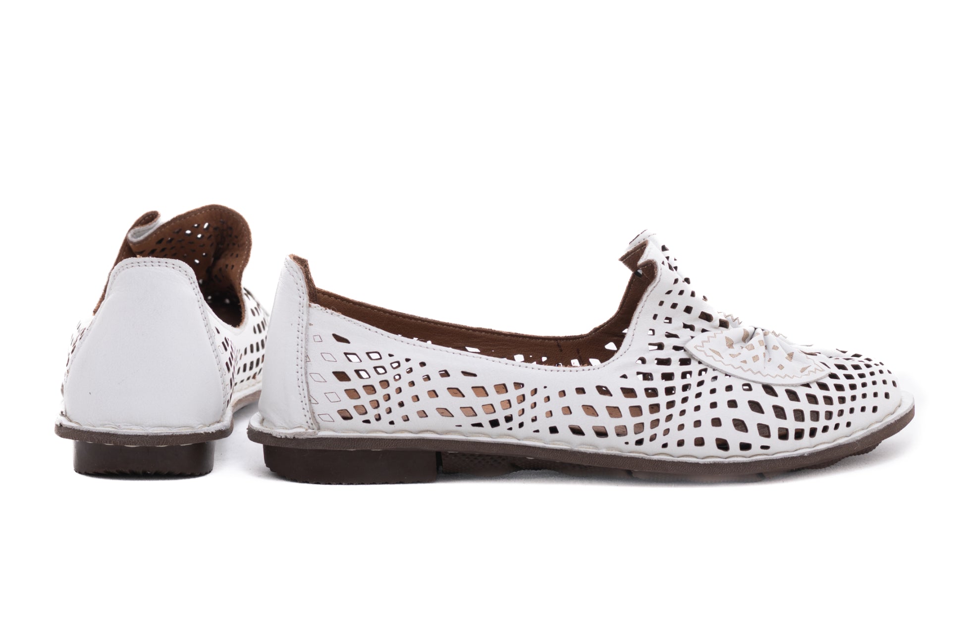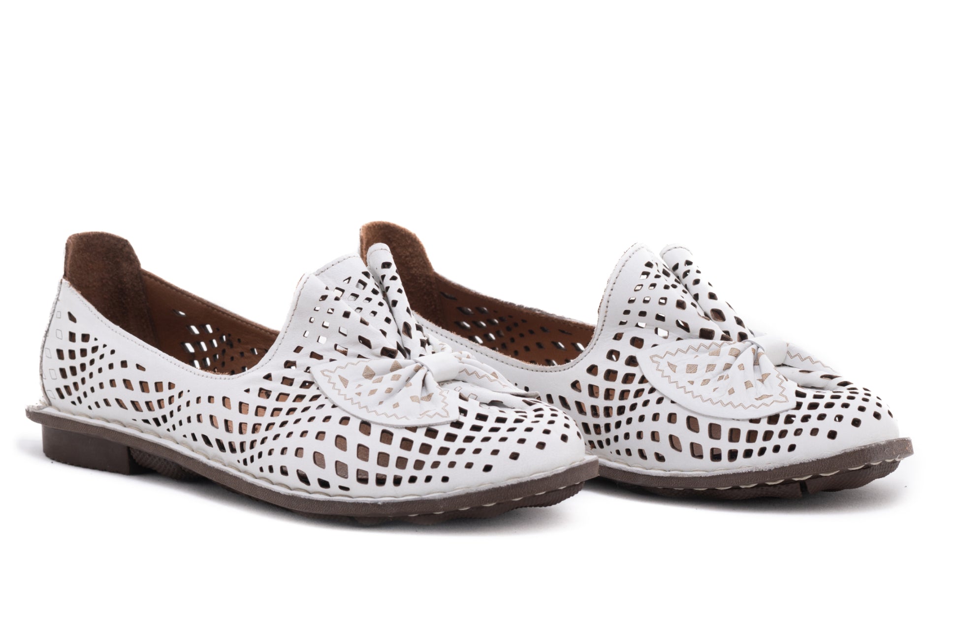 DOGATI women's shoes made of natural leather perforated with a laser without laces, and on the top it has a leather bow as a decoration. The interior of the shoe is made of natural leather in the color of the foot and has a particularly comfortable memory insole.