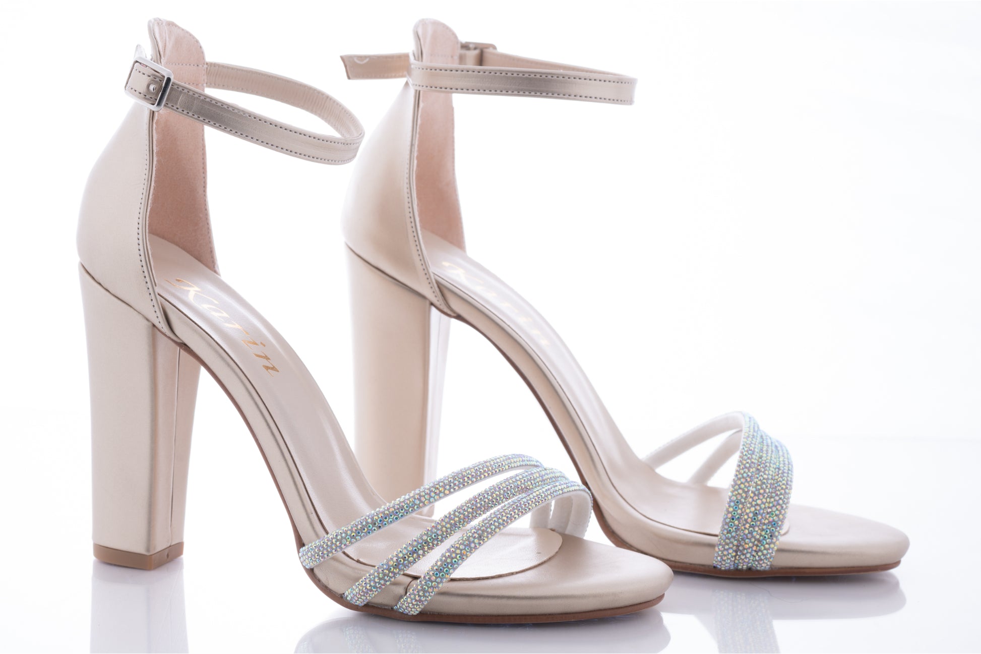 KARIN women's sandals made of quality eco-leather with a 10 cm stiletto heel. The weight of a single foot is 175 grams. The fastening is made with a thin strap that is attached above the ankle for a better fixation of the foot. The front part is made up of 3 straps with crystals which makes this sandal very elegant.