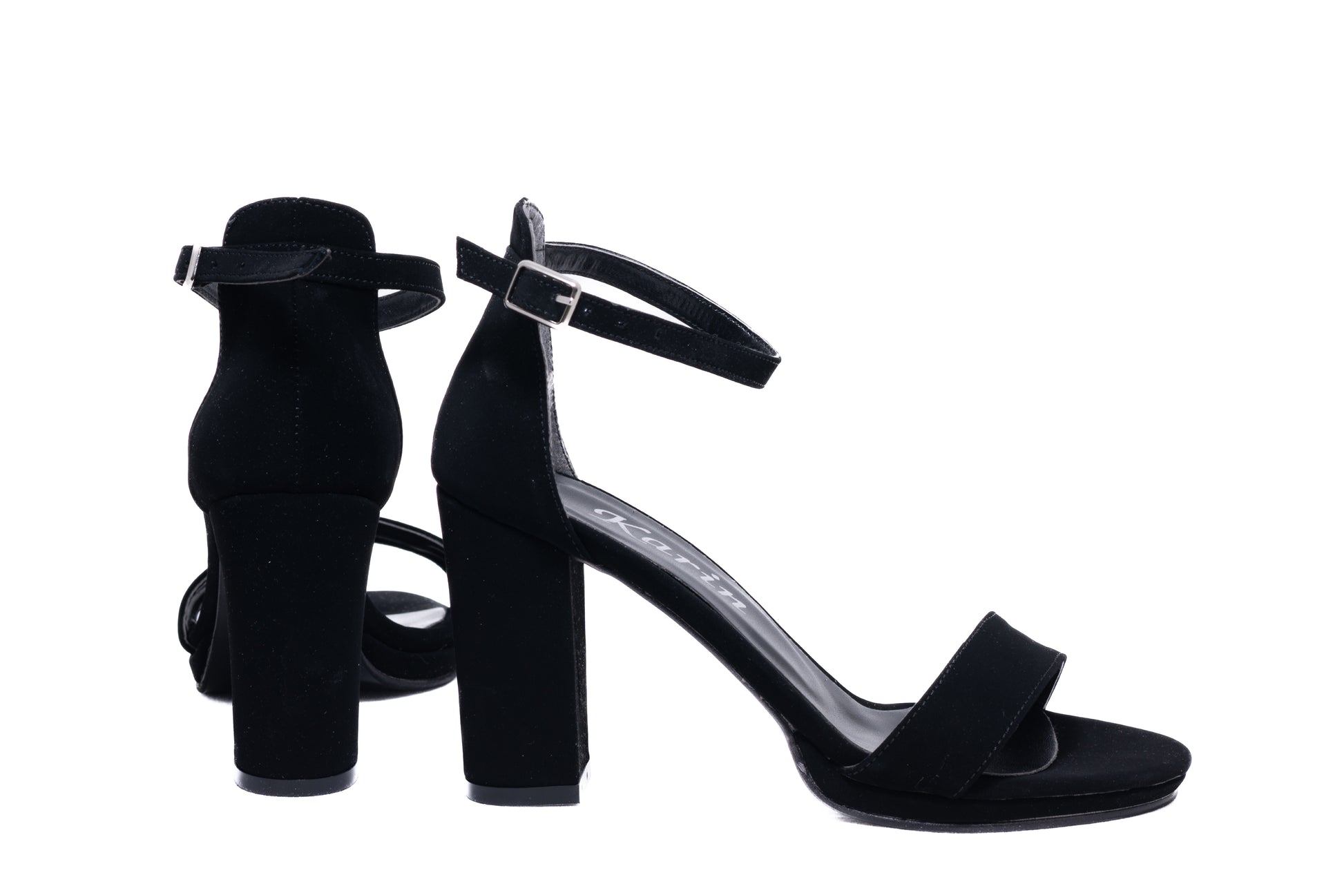 KARIN women's sandals made of quality eco-leather with a thick 8.5 cm heel dressed in the same color. The weight of a single foot is 175 grams. The fastening is made with a thin strap that fastens above the ankle for better fixation of the foot, and in front it has a 0.5 cm platform.